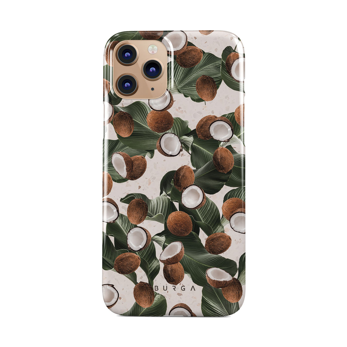 Coconut Crush iPhone 11 Pro Max phone case showcases a soft creme color design with a playful addition of coconuts on top. The unexpected design duo will add a touch of tropical playfulness to your style while offering heavy-duty protection for your cell phone.