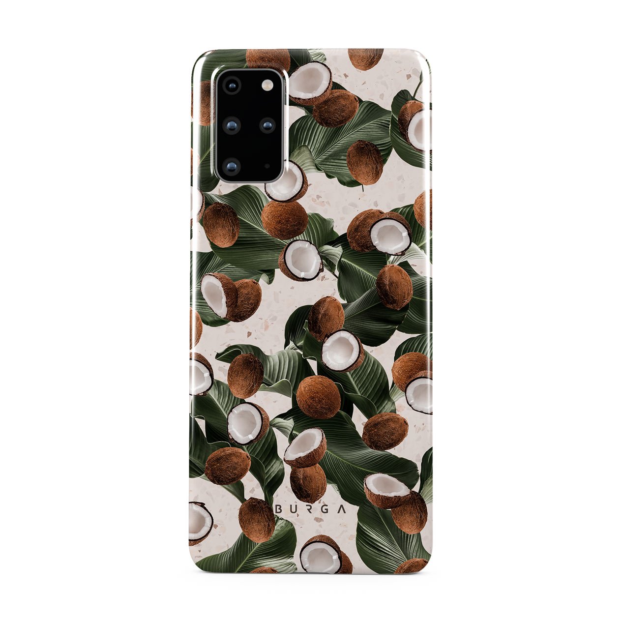 Coconut Crush Samsung Galaxy S20 Plus 4G / 5G phone case showcases a soft creme color design with a playful addition of coconuts on top. The unexpected design duo will add a touch of tropical playfulness to your style while offering heavy-duty protection for your cell phone.