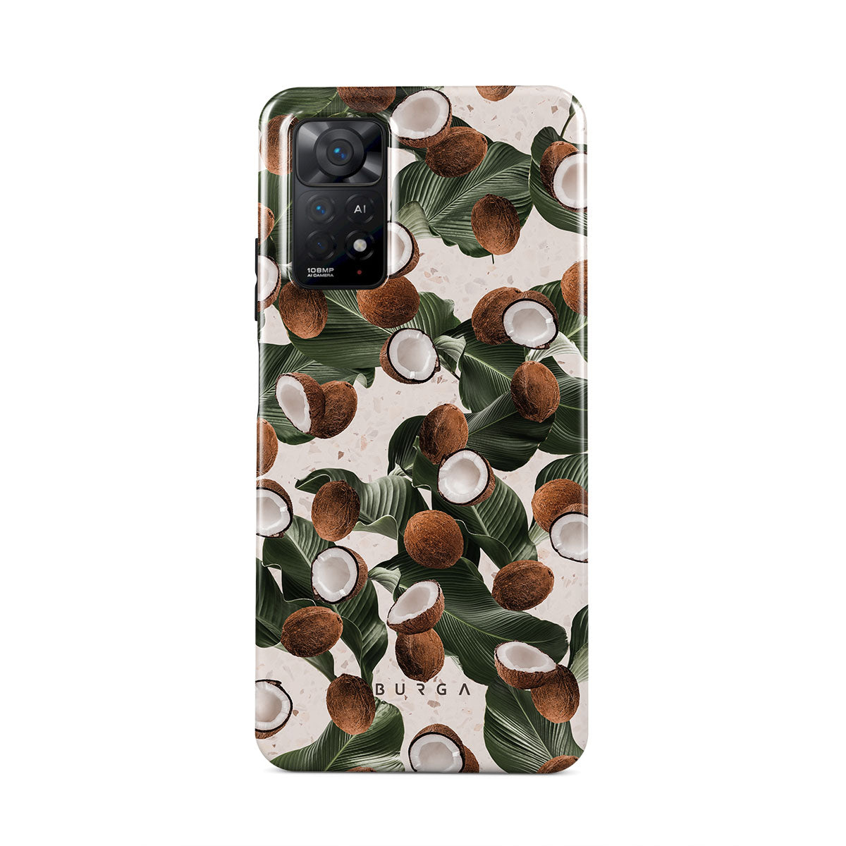 Coconut Crush Xiaomi Redmi Note 11 Pro+ phone case showcases a soft creme color design with a playful addition of coconuts on top. The unexpected design duo will add a touch of tropical playfulness to your style while offering heavy-duty protection for your cell phone.