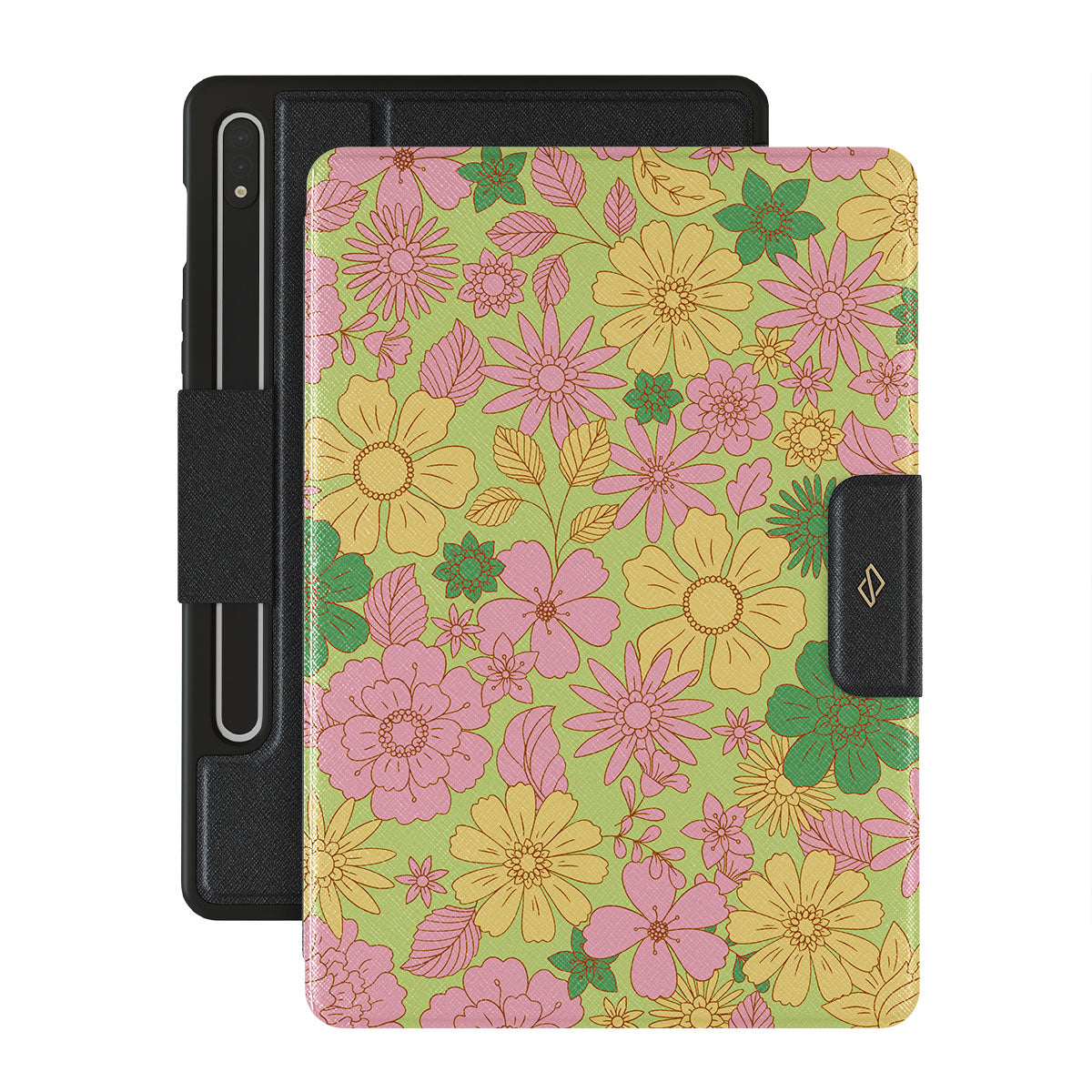The big, bold, and colorful floral pattern of the Amalfi Coast {Galaxy Tab Model} Samsung Galaxy Tab S8+/S7+/S7 FE folio case encases the beautiful and dramatic nature of the coast that inspired the name. Steep cliffs, bright scenery, and colorful houses. Be as daring as the people that live in them, add some boldness to your style, and keep your Galaxy Tab safe while exploring all the cliffs yourself!