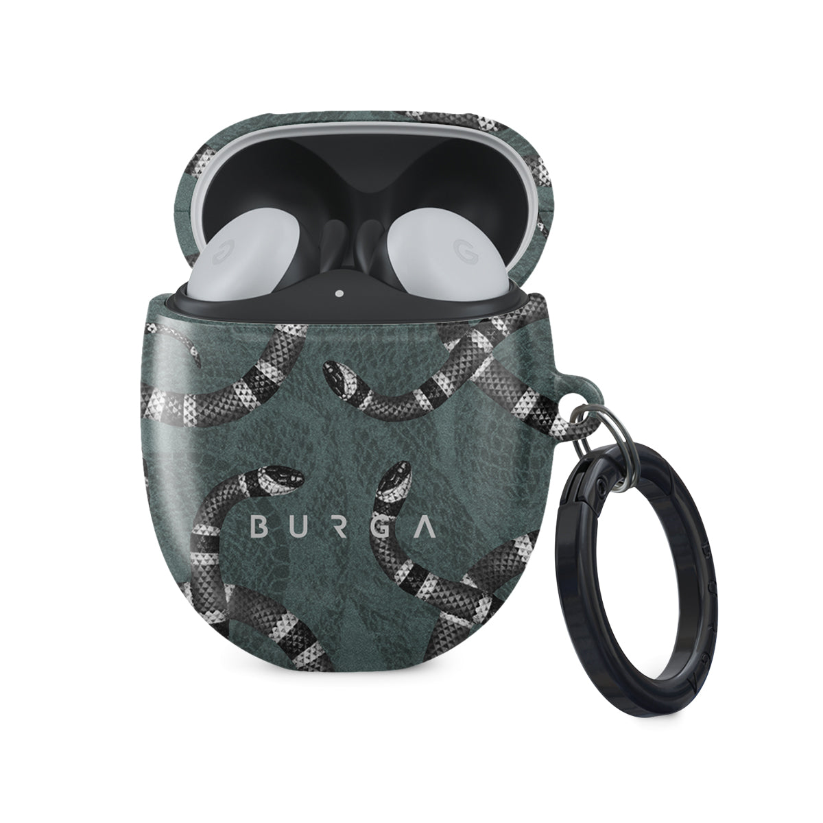 With the fabulous and fierce snake print Google Pixel Buds 2 case cover, match the deep shades of green to your style and make a gloomy mood match your aesthetics whenever you need a touch of coolness in your life. Our case fits perfectly snug around Google Pixel Buds 2 . “Like a glove!” one might say. And it won’t disrupt the wireless charging capabilities of the newer model. There’s even an LED light indicator to prove it (don’t worry, wired charging still works, too). When fitted, the BURGA case will protect the delicate Google Pixel Buds 2 case beneath it from scratches, bumps, and drops while remaining scratch-free itself. Our signature design pattern prints are High Quality, and will never peel or fade away- thanks to our unique printing technology. And finally, a handy carabiner is there to make your life easier and more convenient: just snap it around your keys or belt loop and tackle the day head-on. Your music is right there by your side when you need it.