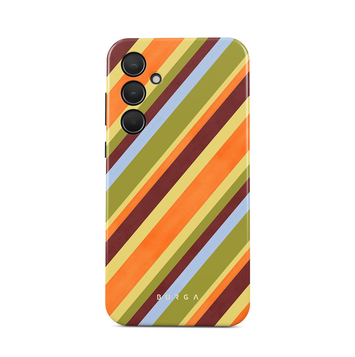 The kind of stripes you’d find on a beach towel left out since noon. Citrus meets spice meets “where’s my other sandal?” The Copacabana Samsung Galaxy A35 phone case design: it’s carefree with a side of extra.