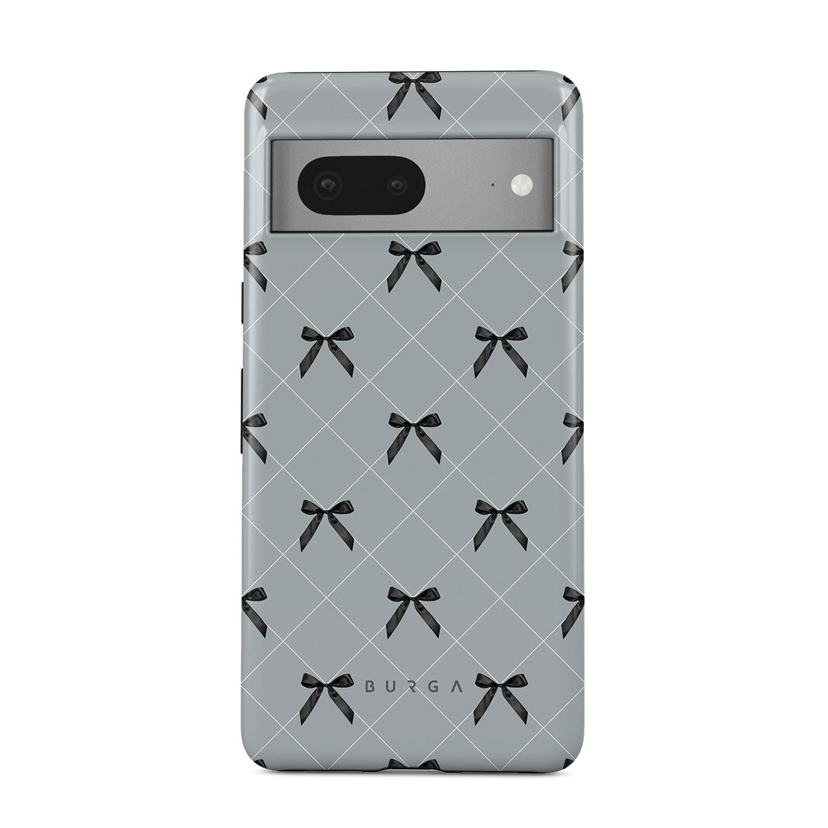 A subtle hint to a world of dance and soft melodies. Crisscrossing bows over a muted gray tone capture the flirtatious essence of the coquette-core aesthetic. Playful and sweet, our Coquette Google Pixel 7a phone case design is perfect for those who find beauty in the details.