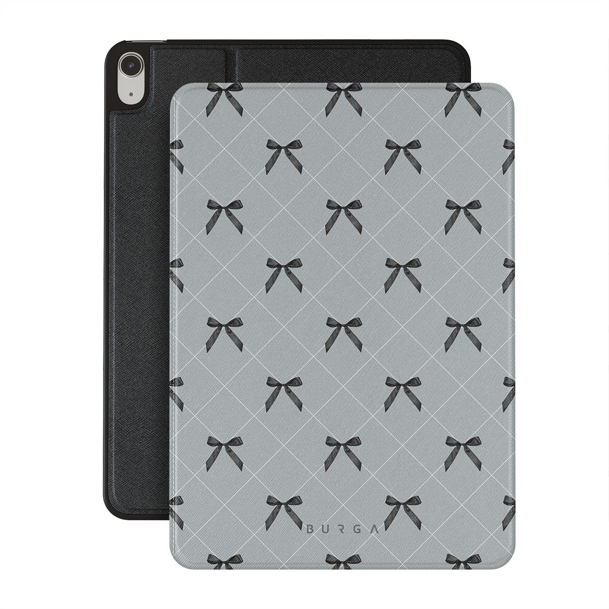 A subtle hint to a world of dance and soft melodies. Crisscrossing bows over a muted gray tone capture the flirtatious essence of the coquette-core aesthetic. Playful and sweet, our Coquette iPad Air 10.9 (5th/4th Gen) folio case design is perfect for those who find beauty in the details.