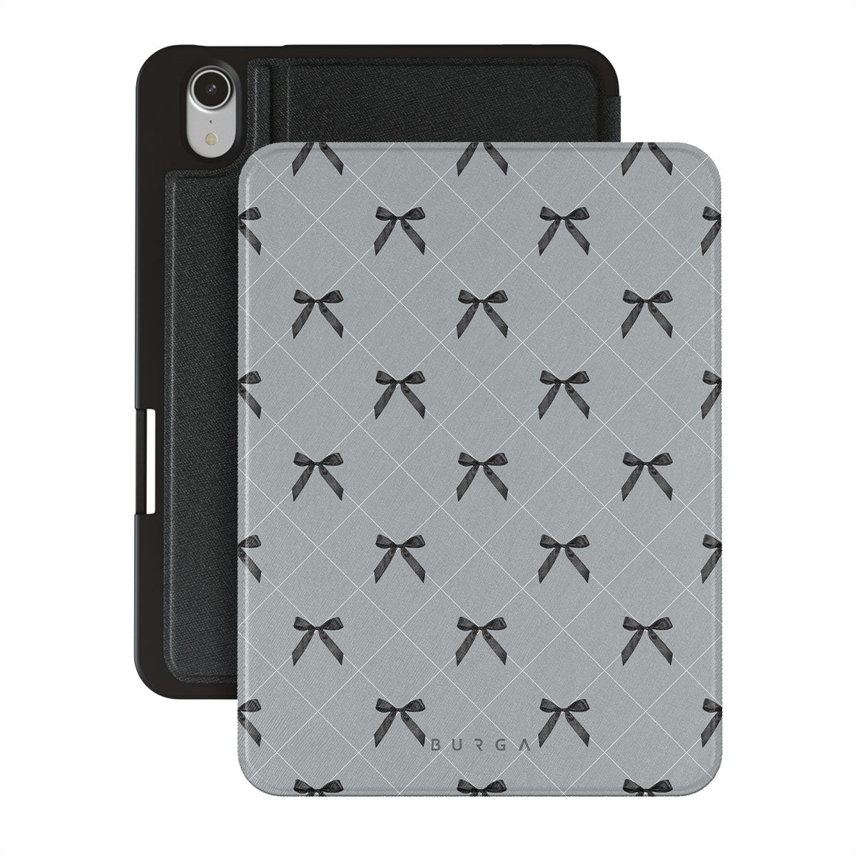 A subtle hint to a world of dance and soft melodies. Crisscrossing bows over a muted gray tone capture the flirtatious essence of the coquette-core aesthetic. Playful and sweet, our Coquette iPad Mini 8.3 (A17 Pro/6th Gen) 2021 folio case design is perfect for those who find beauty in the details.