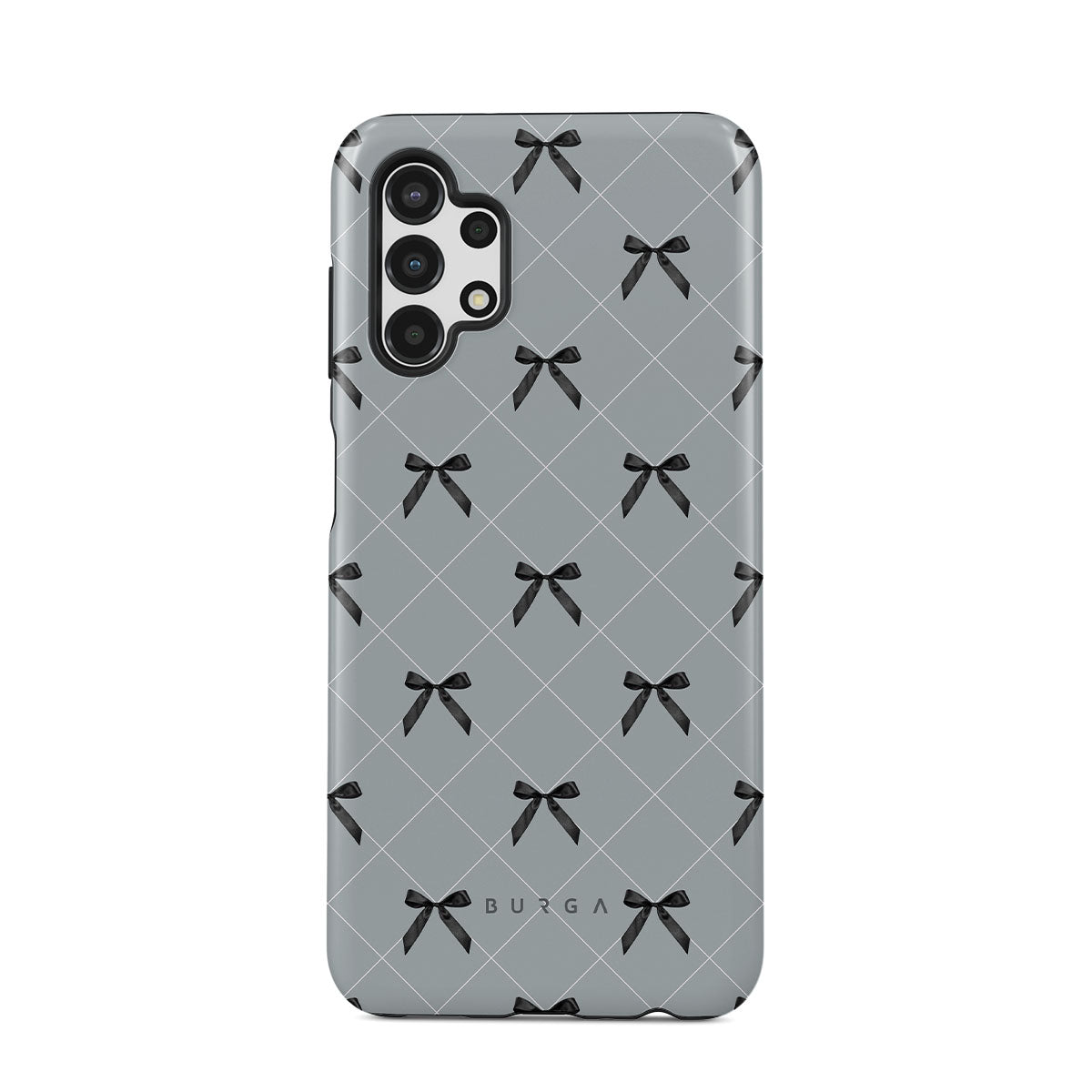 A subtle hint to a world of dance and soft melodies. Crisscrossing bows over a muted gray tone capture the flirtatious essence of the coquette-core aesthetic. Playful and sweet, our Coquette Samsung Galaxy A13 4G phone case design is perfect for those who find beauty in the details.