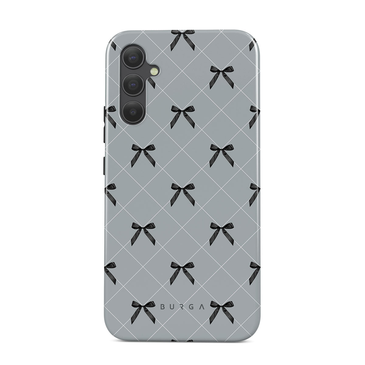 A subtle hint to a world of dance and soft melodies. Crisscrossing bows over a muted gray tone capture the flirtatious essence of the coquette-core aesthetic. Playful and sweet, our Coquette Samsung Galaxy A34 phone case design is perfect for those who find beauty in the details.