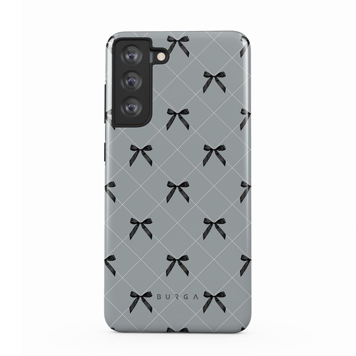 A subtle hint to a world of dance and soft melodies. Crisscrossing bows over a muted gray tone capture the flirtatious essence of the coquette-core aesthetic. Playful and sweet, our Coquette Samsung Galaxy S21 FE phone case design is perfect for those who find beauty in the details.
