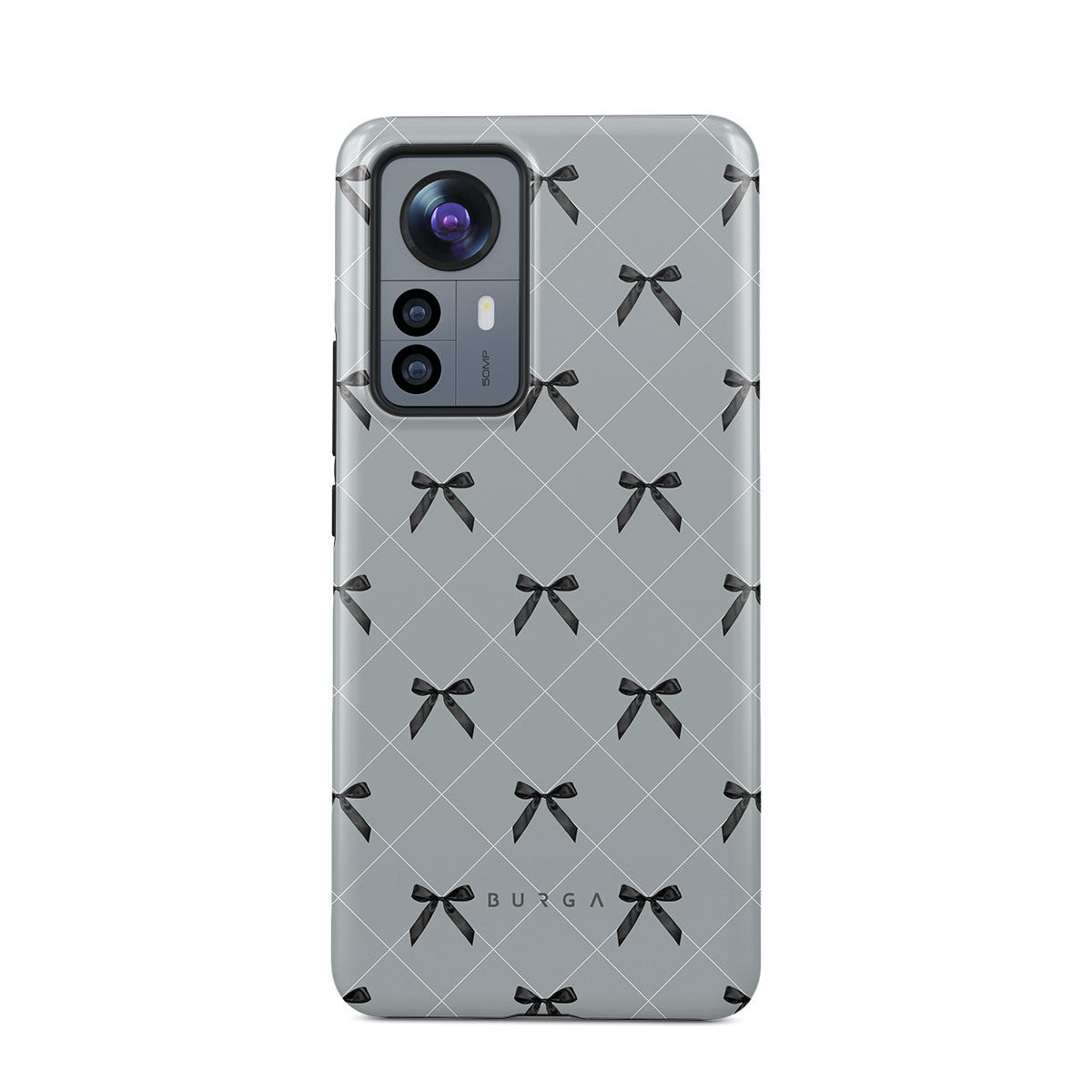 A subtle hint to a world of dance and soft melodies. Crisscrossing bows over a muted gray tone capture the flirtatious essence of the coquette-core aesthetic. Playful and sweet, our Coquette Xiaomi 12 phone case design is perfect for those who find beauty in the details.