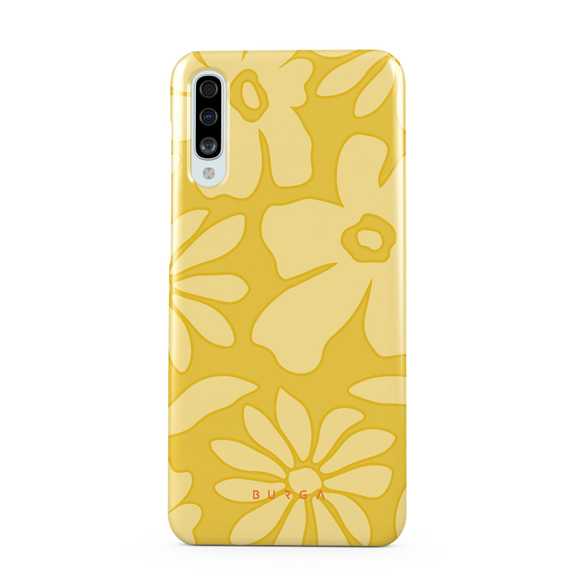 Our bright yellow Samsung Galaxy A50 phone case features bold, beautiful flowers that evoke a sense of nostalgia and happiness. This cheerful floral design captures the essence of joyful moments, making your device a reminder of sunny memories. Perfect for brightening up your day.