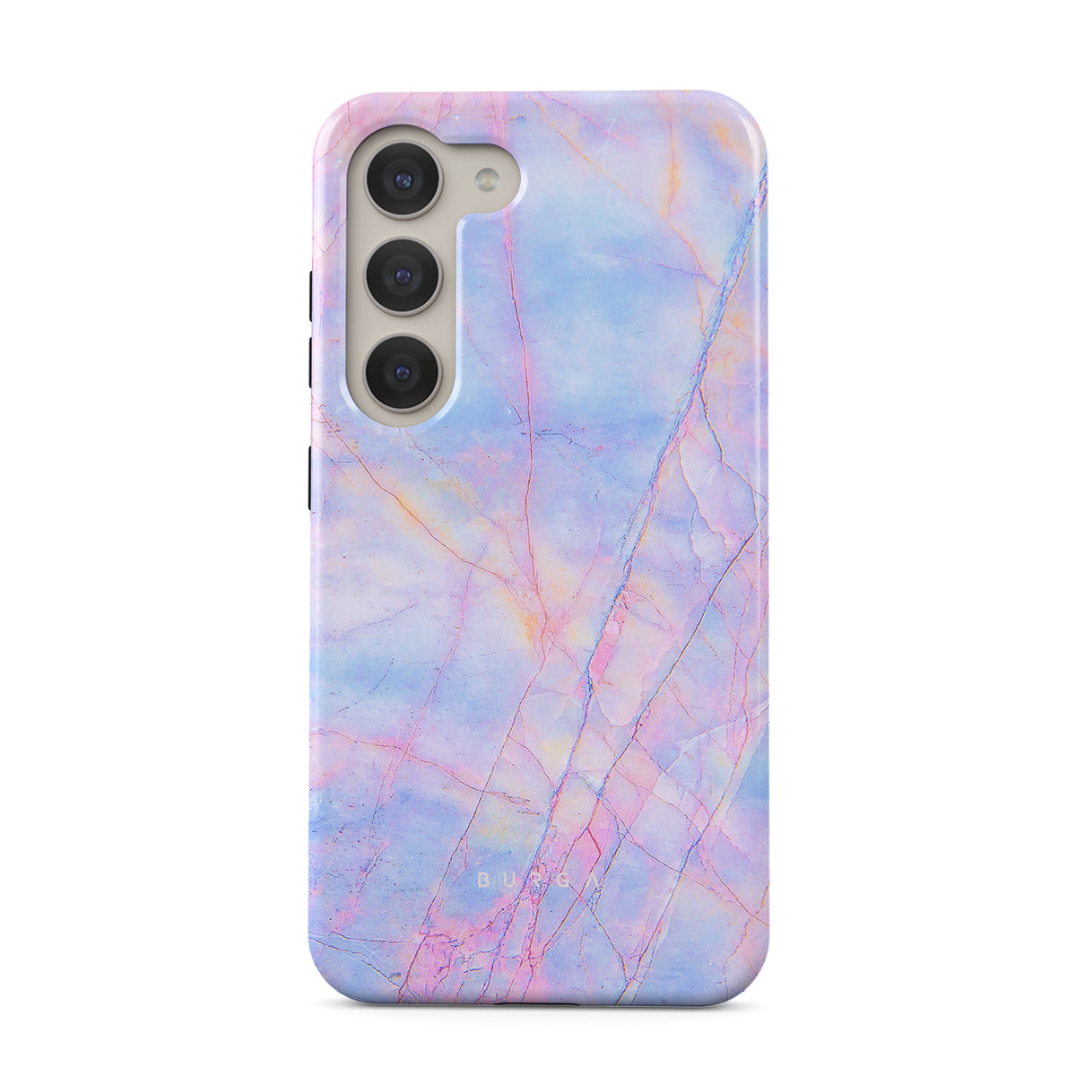 Sweet, fluffy, and dissolves so easily. Take a soft pastel Samsung Galaxy S23 phone case inspired by the cotton candy to remind you of the rides in the Ferris wheel. Do not let the delicate look deceive you, as this case still offers heavy-duty protection for your phone.