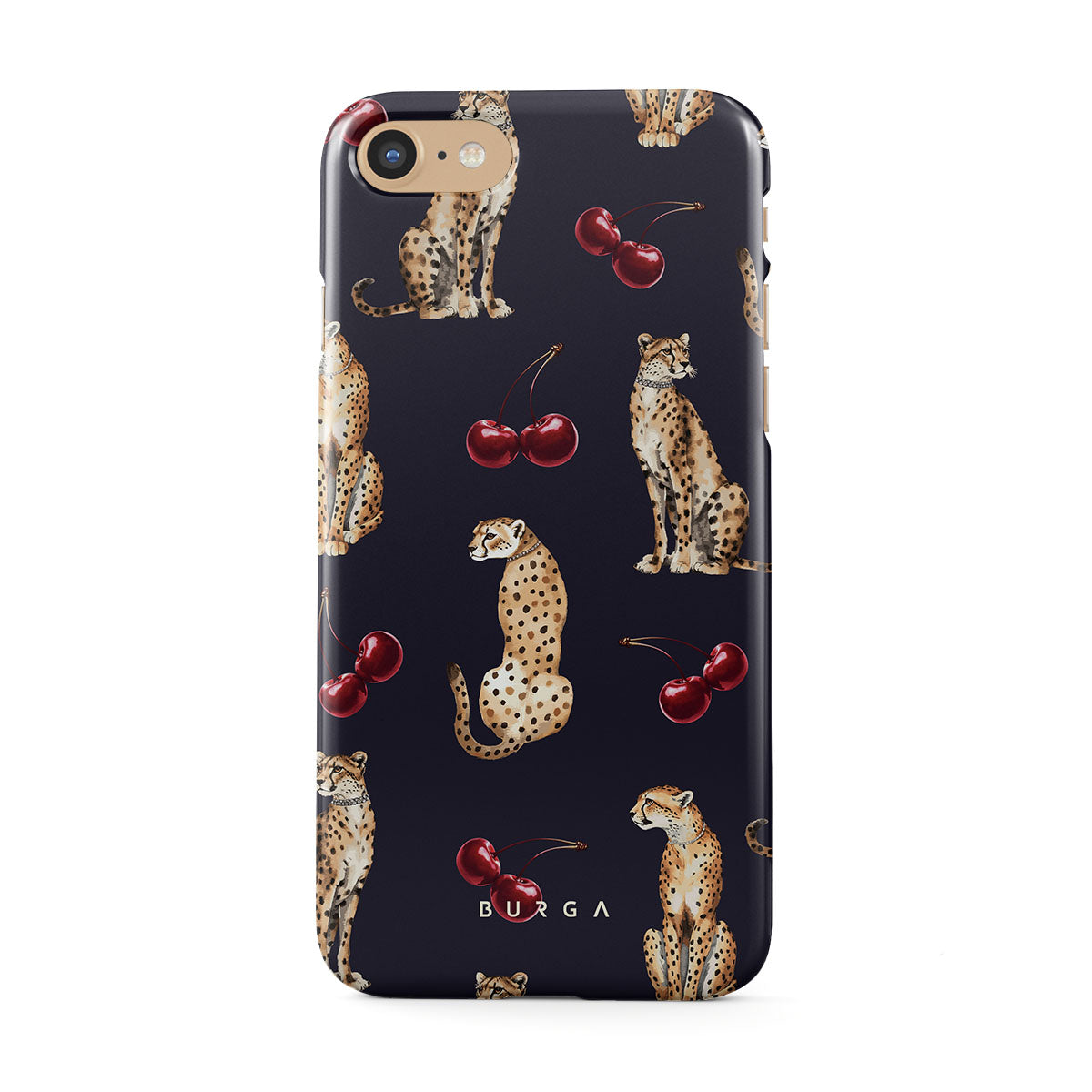 This design features: cheetah patterns, cheetahs, cherries