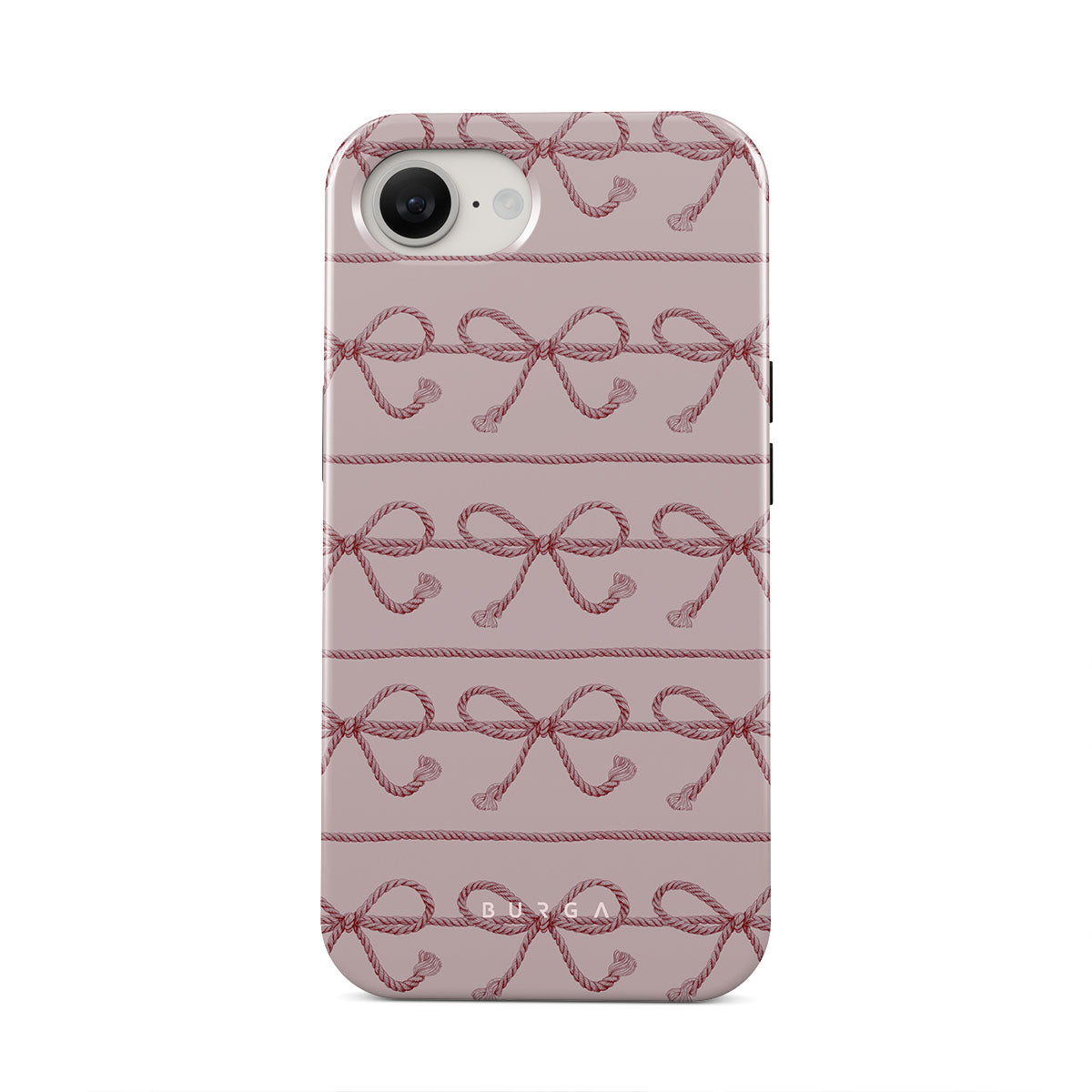 This design features: pink bows, pink background, ropes, playful pattern.