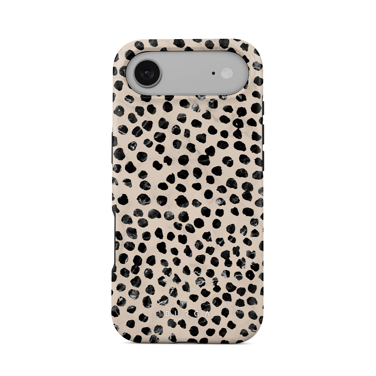 Cute cream color as a background for the unique pattern of asymmetrical black spots creates a real eye-catcher in our Almond Latte iPhone Air phone case. The spotted pattern adds a touch of luxury to your phone, while the case's hard-shell nature offers much-needed protection making it a popular choice between fashion lovers.