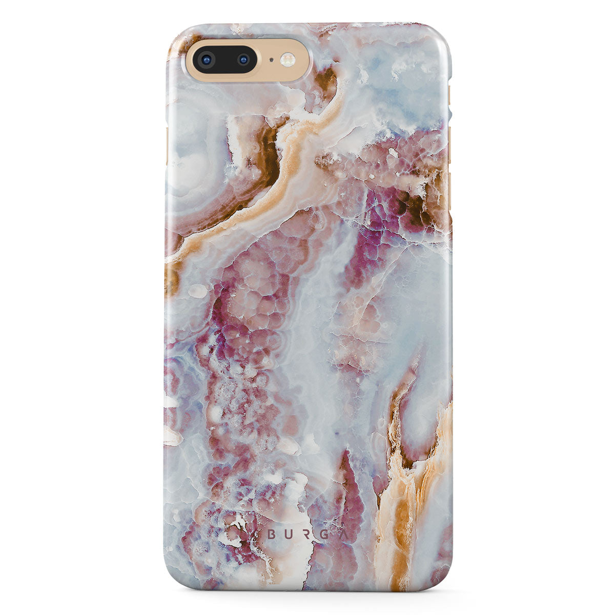 What frost can create on the surfaces is perfectly imperfect. The cute marble pattern of our hard-shell iPhone 7 Plus 8 Plus phone case inspired by the frozen leaves adds a splash of color in a dreamy blue background, becoming a beautiful part of anyone's style.