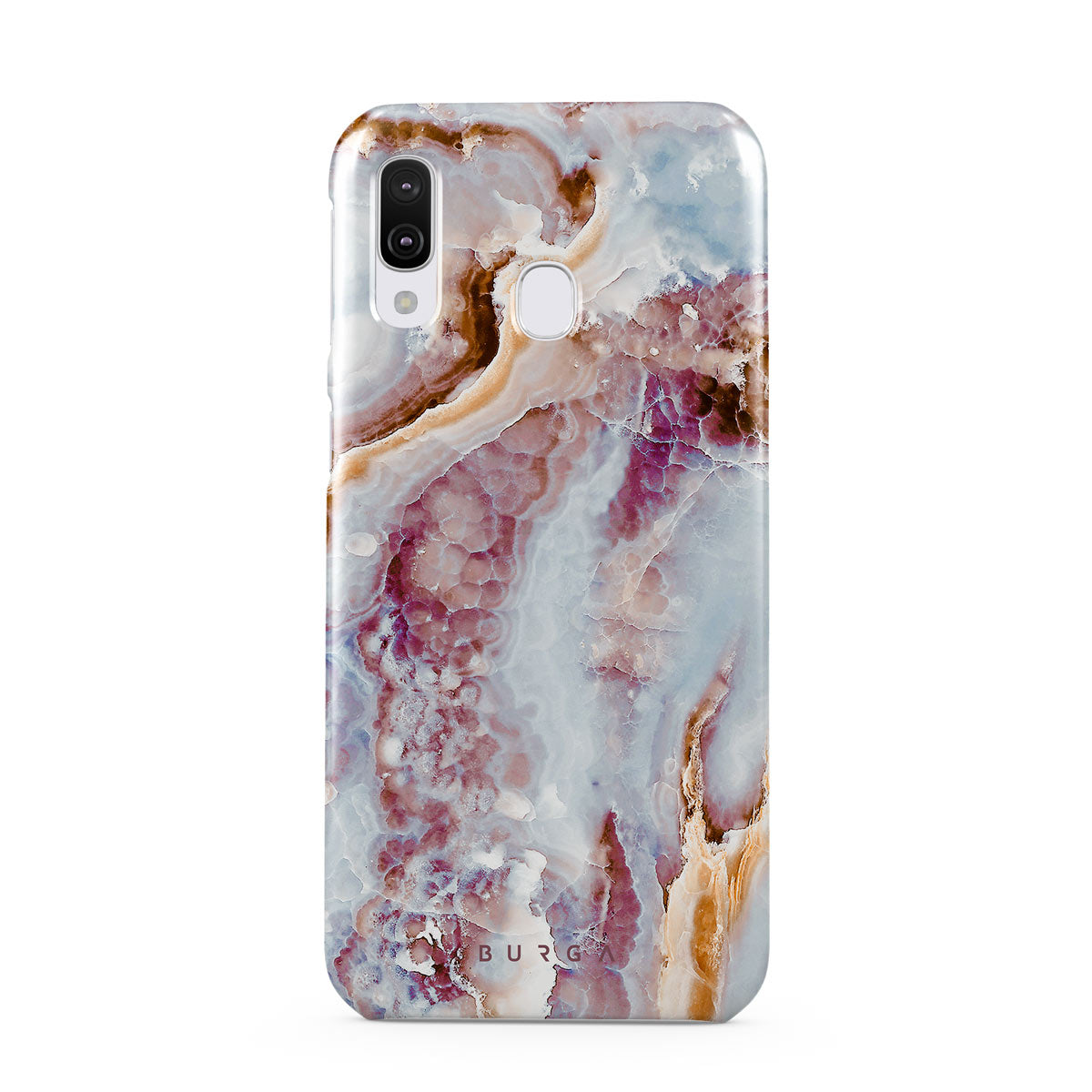 What frost can create on the surfaces is perfectly imperfect. The cute marble pattern of our hard-shell Samsung Galaxy A40 phone case inspired by the frozen leaves adds a splash of color in a dreamy blue background, becoming a beautiful part of anyone's style.