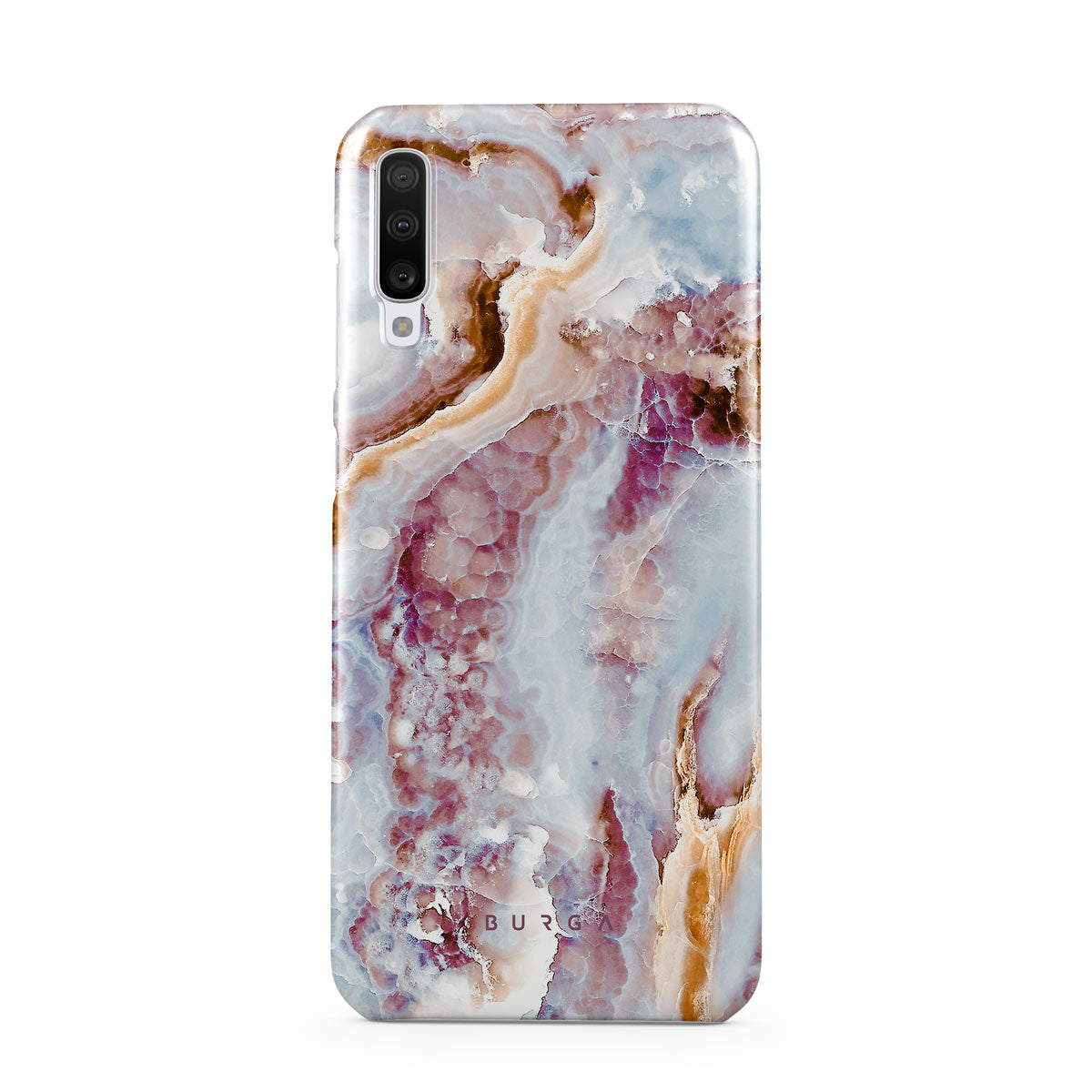 What frost can create on the surfaces is perfectly imperfect. The cute marble pattern of our hard-shell Samsung Galaxy A70 phone case inspired by the frozen leaves adds a splash of color in a dreamy blue background, becoming a beautiful part of anyone's style.