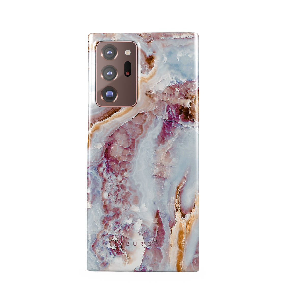 What frost can create on the surfaces is perfectly imperfect. The cute marble pattern of our hard-shell Samsung Galaxy Note 20 Ultra 4G / 5G phone case inspired by the frozen leaves adds a splash of color in a dreamy blue background, becoming a beautiful part of anyone's style.