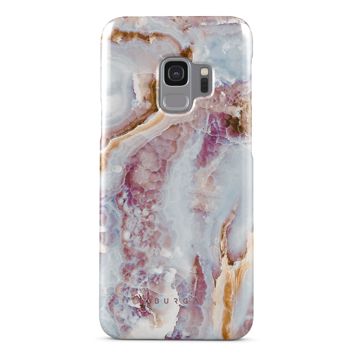 What frost can create on the surfaces is perfectly imperfect. The cute marble pattern of our hard-shell Samsung Galaxy S9 phone case inspired by the frozen leaves adds a splash of color in a dreamy blue background, becoming a beautiful part of anyone's style.