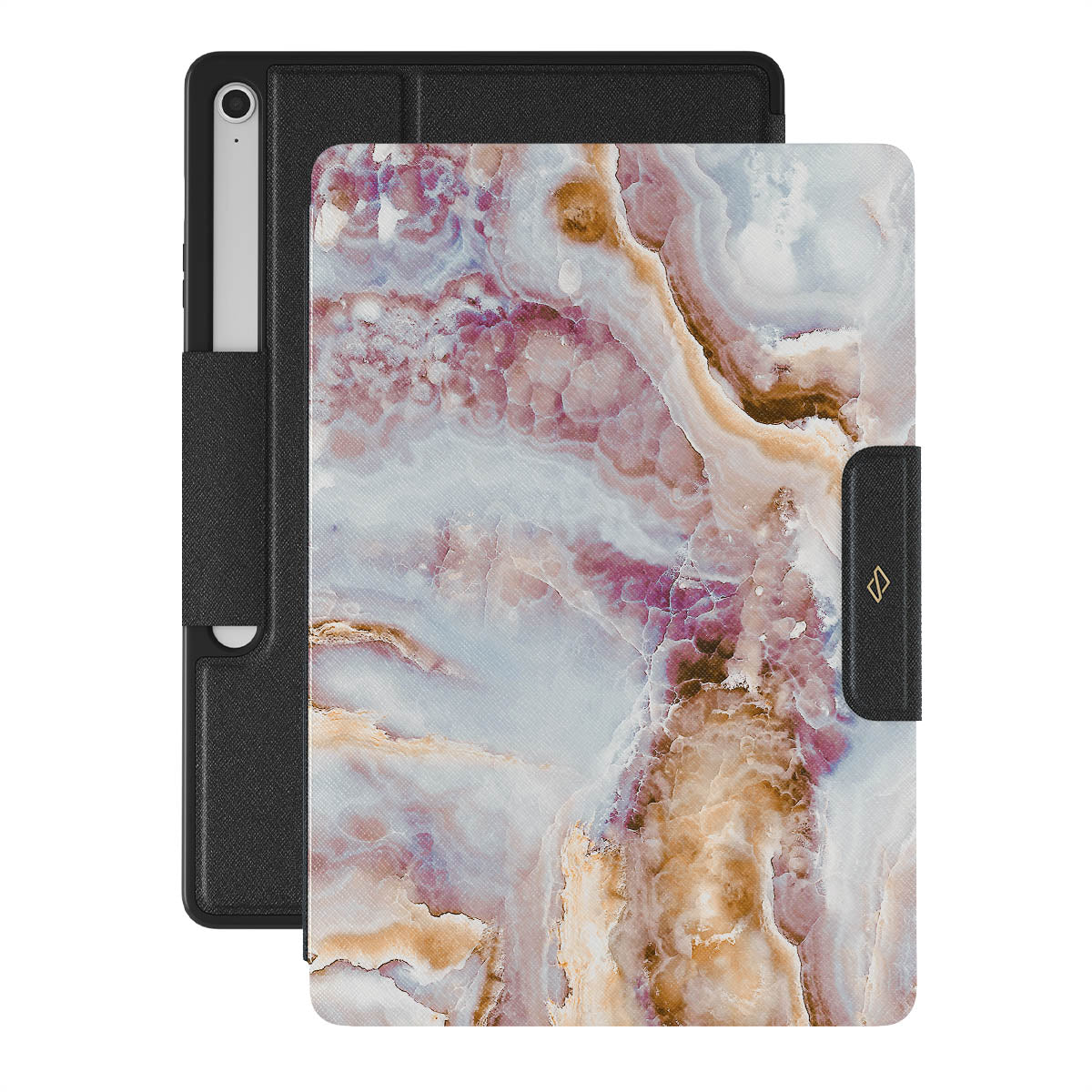 What frost can create on the surfaces is perfectly imperfect. The cute marble pattern of our hard-shell Samsung Galaxy Tab S10+ FE folio case inspired by the frozen leaves adds a splash of color in a dreamy blue background, becoming a beautiful part of anyone's style.