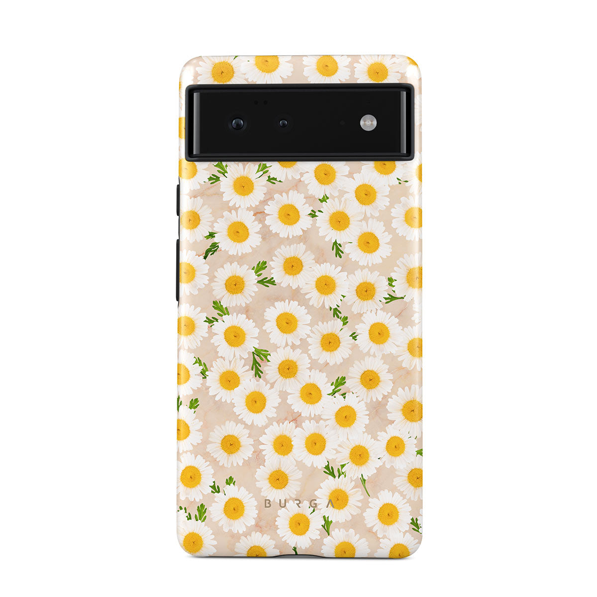 The smell of the Daisies surrounding you, memories of "Loves me, loves me not," and the smile it gives you. Feel free to look, to smell. Take this blissful moment with your daisy inspired Google Pixel 6a phone case whenever you need a little relaxation or when you want to simply enjoy the moment while protecting your phone.