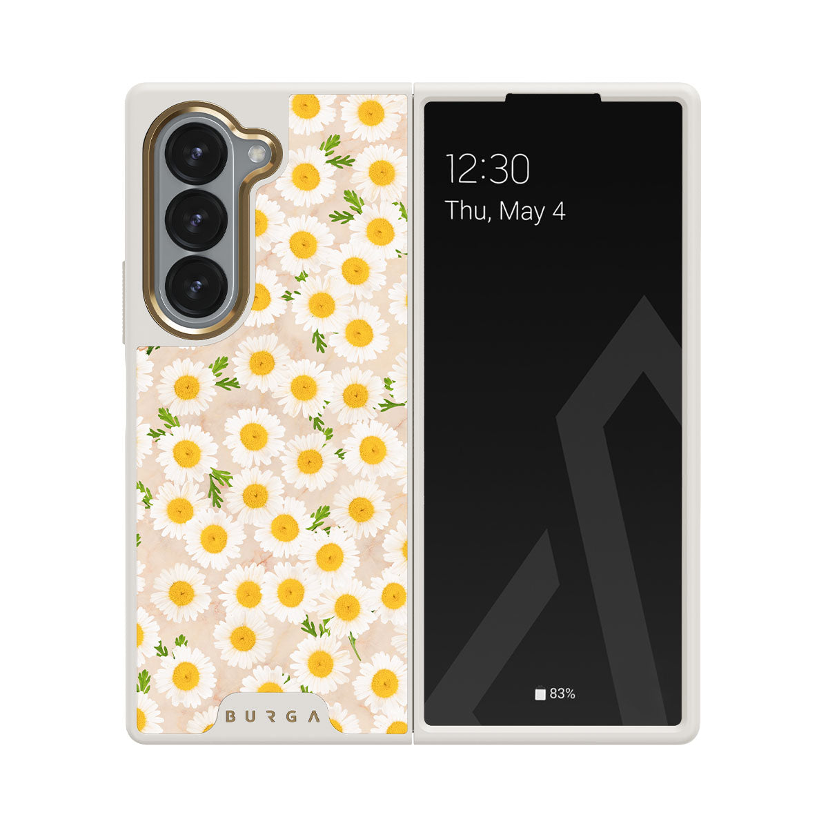 The smell of the Daisies surrounding you, memories of "Loves me, loves me not," and the smile it gives you. Feel free to look, to smell. Take this blissful moment with your daisy inspired Samsung Galaxy Z Fold 6 phone case whenever you need a little relaxation or when you want to simply enjoy the moment while protecting your phone.