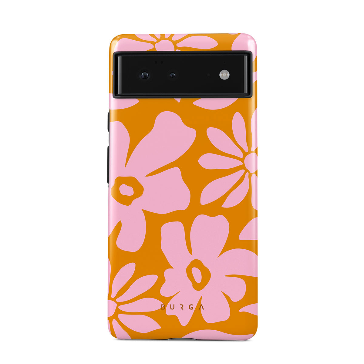 Step into a world of vibrant celebration with our Daytime Fiesta. Delicate pastel pink flowers dance against a backdrop of electrifying orange, creating a captivating fusion of color. Embrace the positive energy of this beautiful design and let your Google Pixel 6 phone case radiate the spirit of a lively fiesta wherever you go.