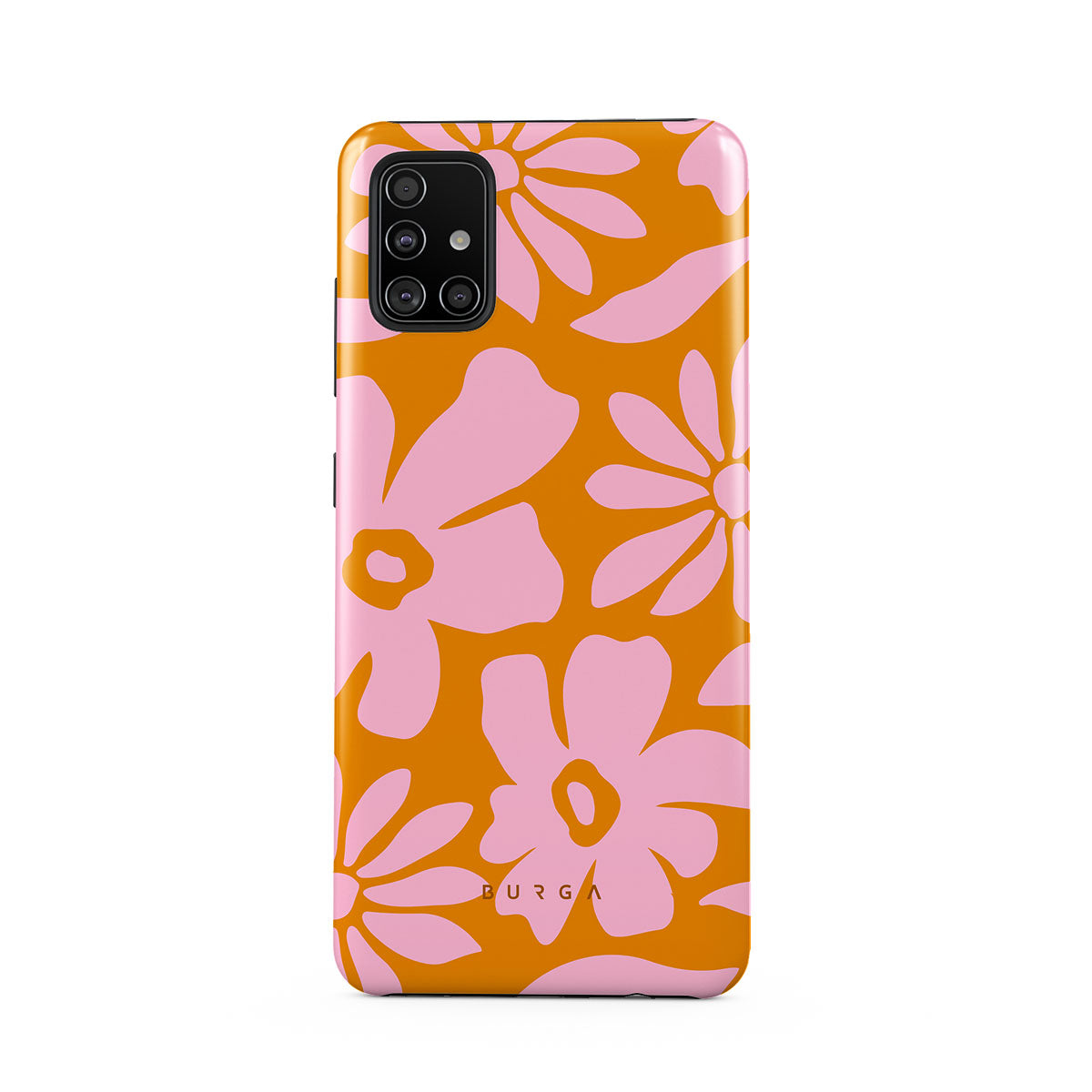 Step into a world of vibrant celebration with our Daytime Fiesta. Delicate pastel pink flowers dance against a backdrop of electrifying orange, creating a captivating fusion of color. Embrace the positive energy of this beautiful design and let your Samsung Galaxy A51 4G phone case radiate the spirit of a lively fiesta wherever you go.