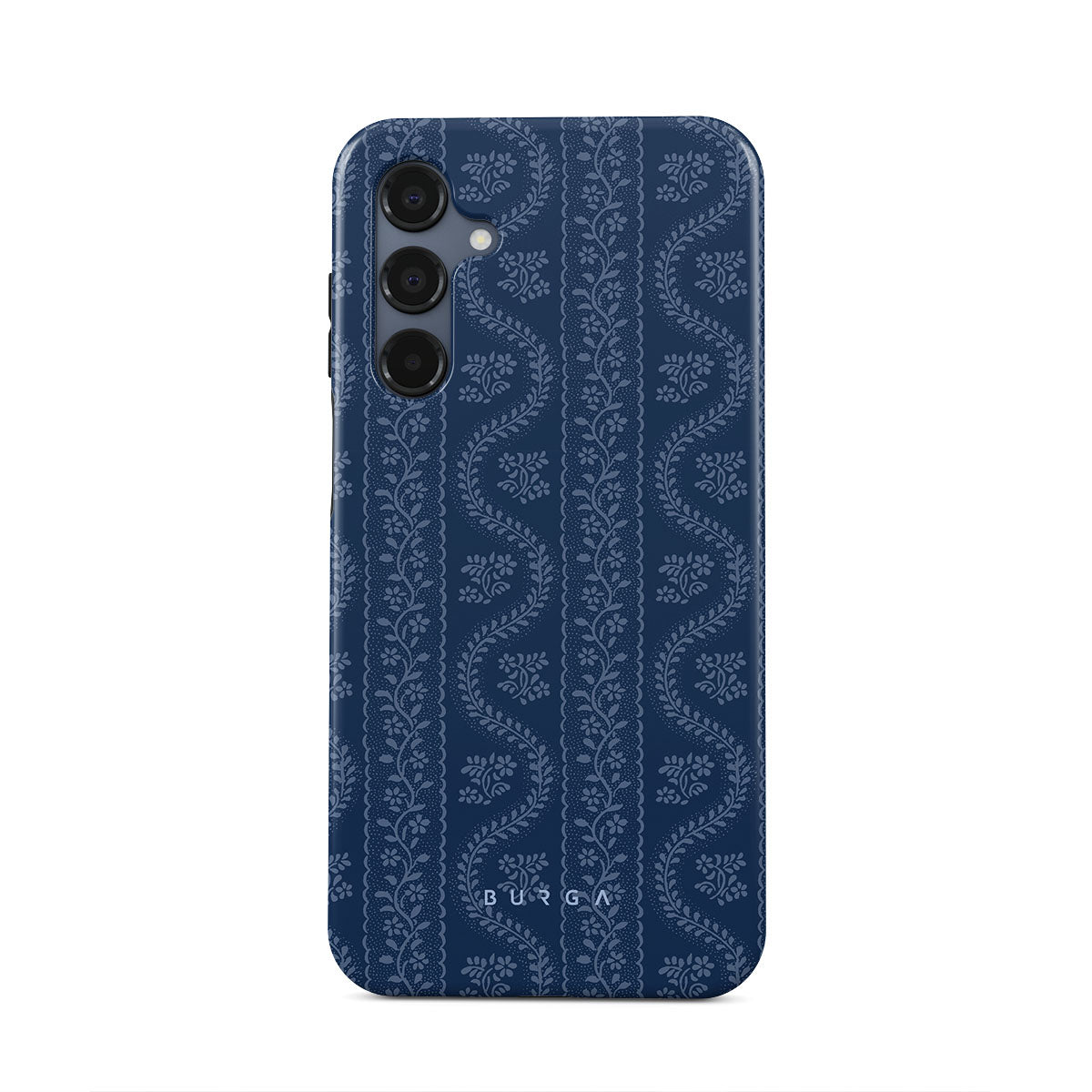 This design features: paisley, denim-inspired, vintage, classic, intricate patterns, blue tones .