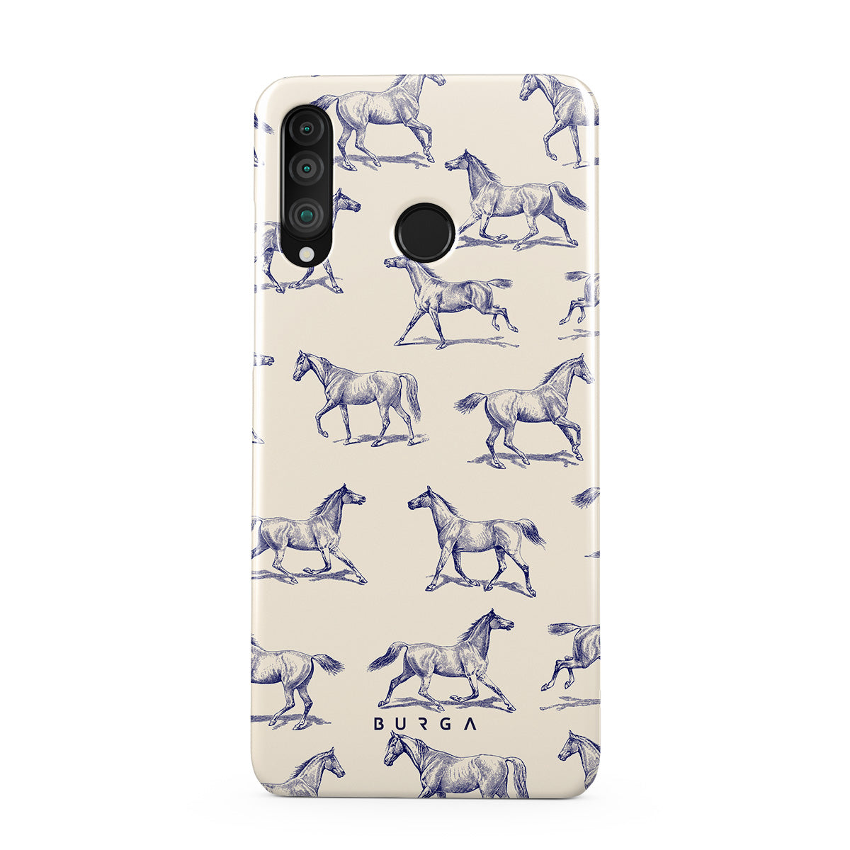 Introducing our Derby Race Huawei P30 Lite phone case designa portrait of elegance in motion on a soft nude canvas. Engraved in delicate blue contours, galloping horses dance upon the wind, frozen in an exquisite moment of grace.