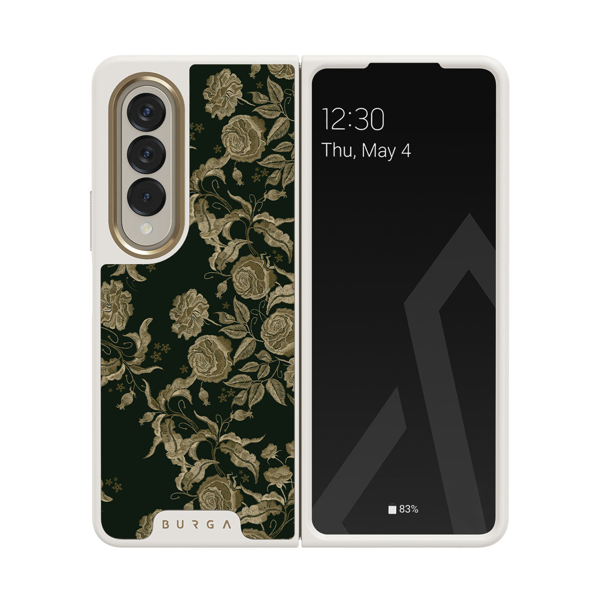 Some things are written in the stars, others in golden roses. Destiny has spoken, and it says your future is wrapped in elegance. This Samsung Galaxy Z Fold 4 phone case design’s golden vines and dark blooms paint a picture of what’s to come—fortune, mystery, and beauty intertwined. Can you feel fate calling?