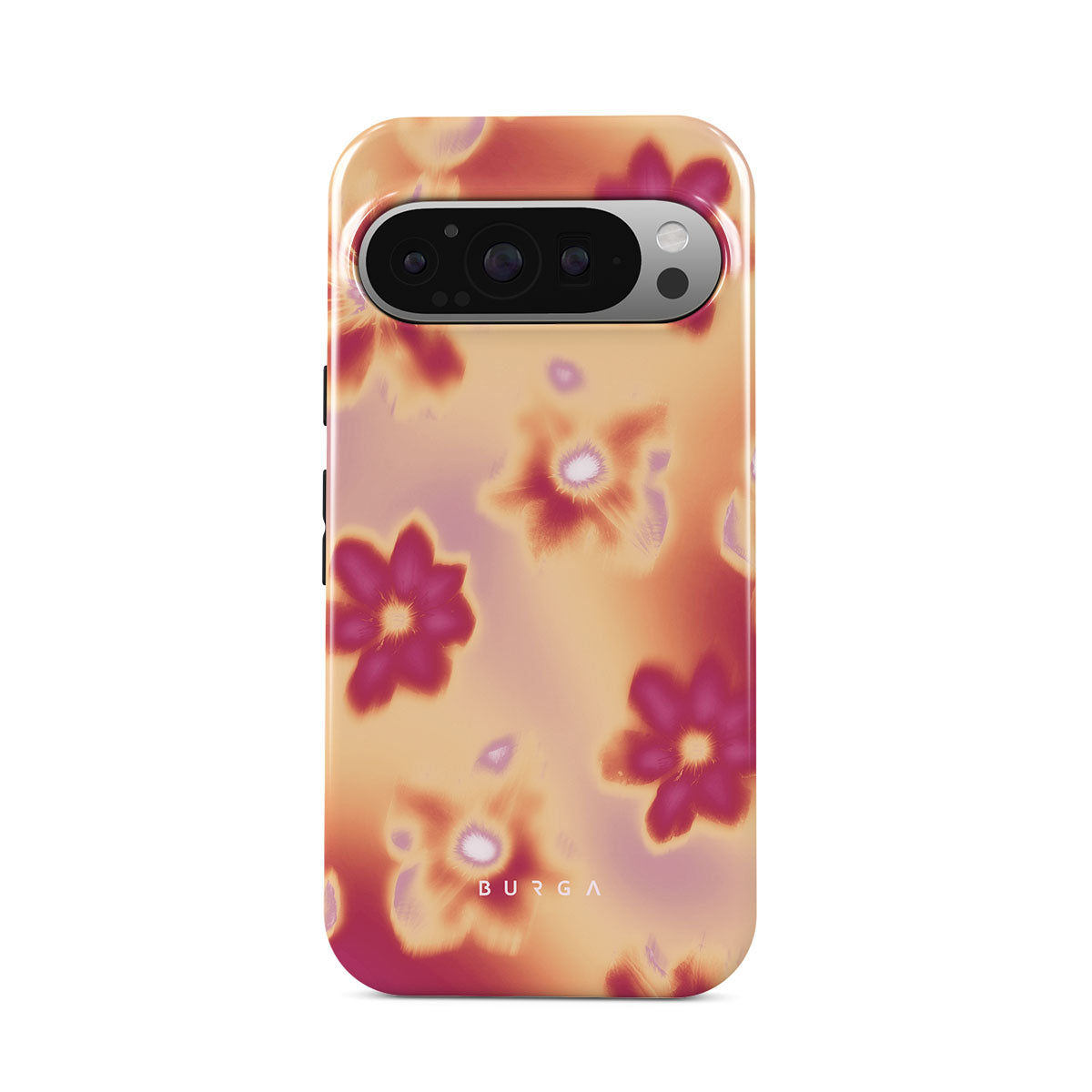 Get lost in the allure of our Divine Google Pixel 9 Pro XL phone case design. Picture blossoms bathed in fiery hues of pink and orange, each seemingly charged with life's raw energy. Set against a canvas that radiates power and warmth, these flowers offer more than just beauty; they resonate with the essence that binds us all.