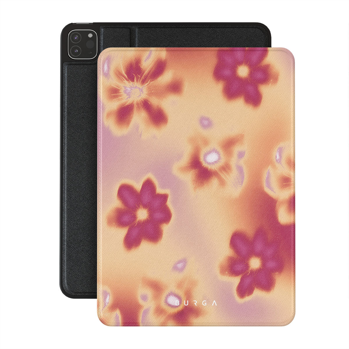 Get lost in the allure of our Divine folio case design. Picture blossoms bathed in fiery hues of pink and orange, each seemingly charged with life's raw energy. Set against a canvas that radiates power and warmth, these flowers offer more than just beauty; they resonate with the essence that binds us all.