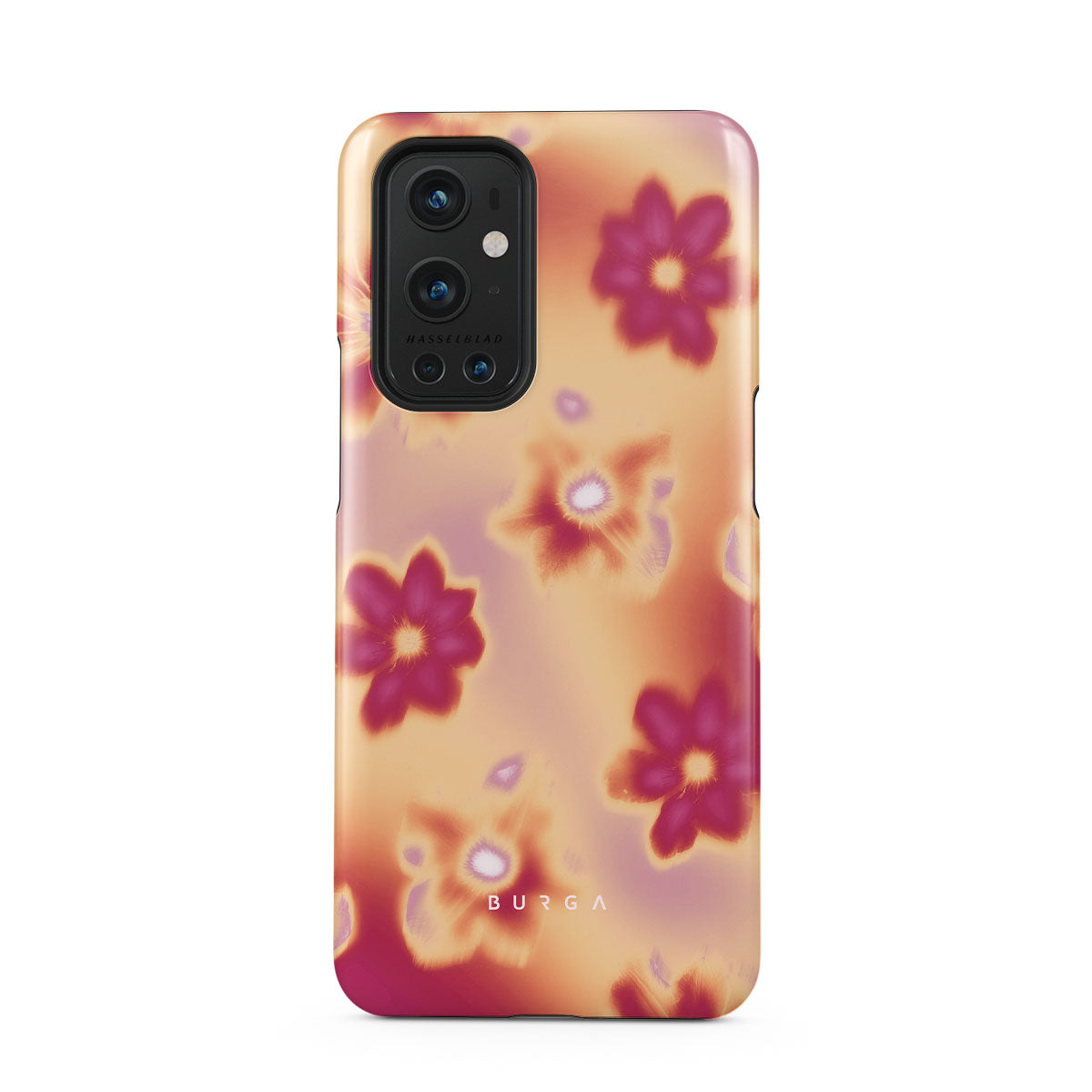 Get lost in the allure of our Divine OnePlus 9 Pro phone case design. Picture blossoms bathed in fiery hues of pink and orange, each seemingly charged with life's raw energy. Set against a canvas that radiates power and warmth, these flowers offer more than just beauty; they resonate with the essence that binds us all.