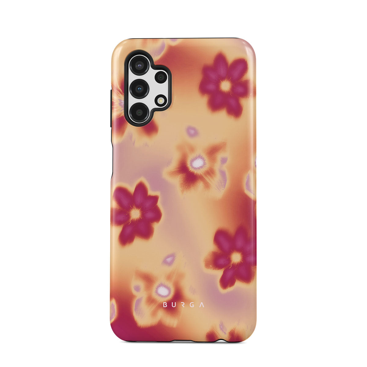 Get lost in the allure of our Divine Samsung Galaxy A13 4G phone case design. Picture blossoms bathed in fiery hues of pink and orange, each seemingly charged with life's raw energy. Set against a canvas that radiates power and warmth, these flowers offer more than just beauty; they resonate with the essence that binds us all.