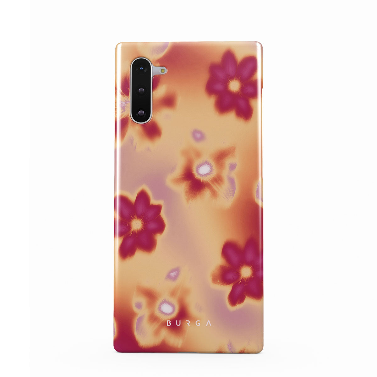 Get lost in the allure of our Divine Samsung Galaxy Note 10 phone case design. Picture blossoms bathed in fiery hues of pink and orange, each seemingly charged with life's raw energy. Set against a canvas that radiates power and warmth, these flowers offer more than just beauty; they resonate with the essence that binds us all.