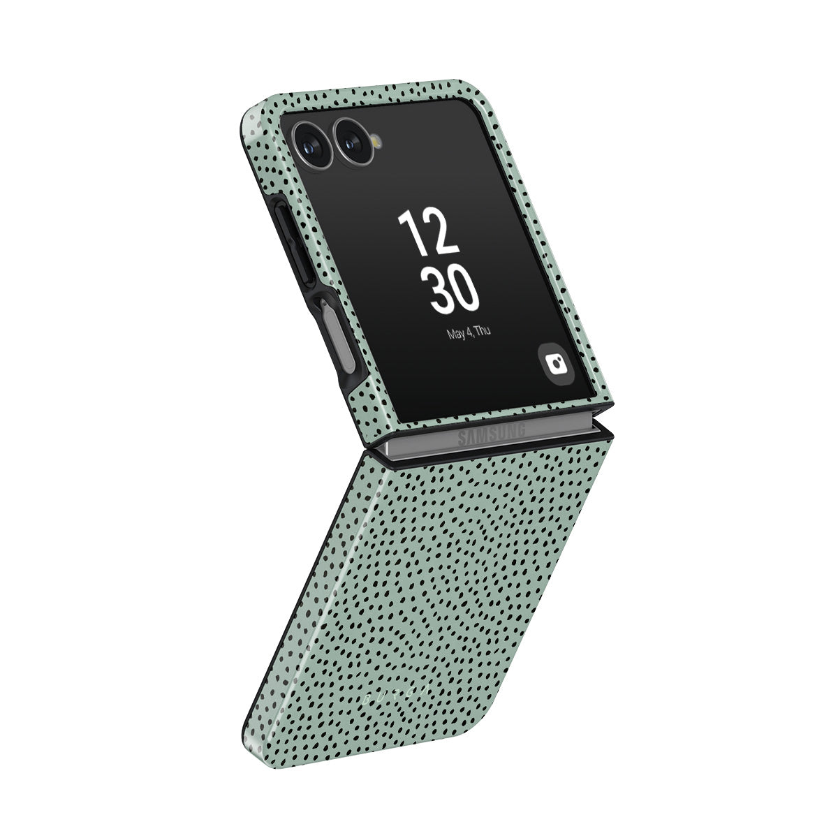 Bring some freshness and excitement to the warm days coming with our pretty Mint Gelato Samsung Galaxy Z Flip 7 dots phone case. With the trendy dotted pattern, make your phone a real eye candy while protecting it from dangerous falls.