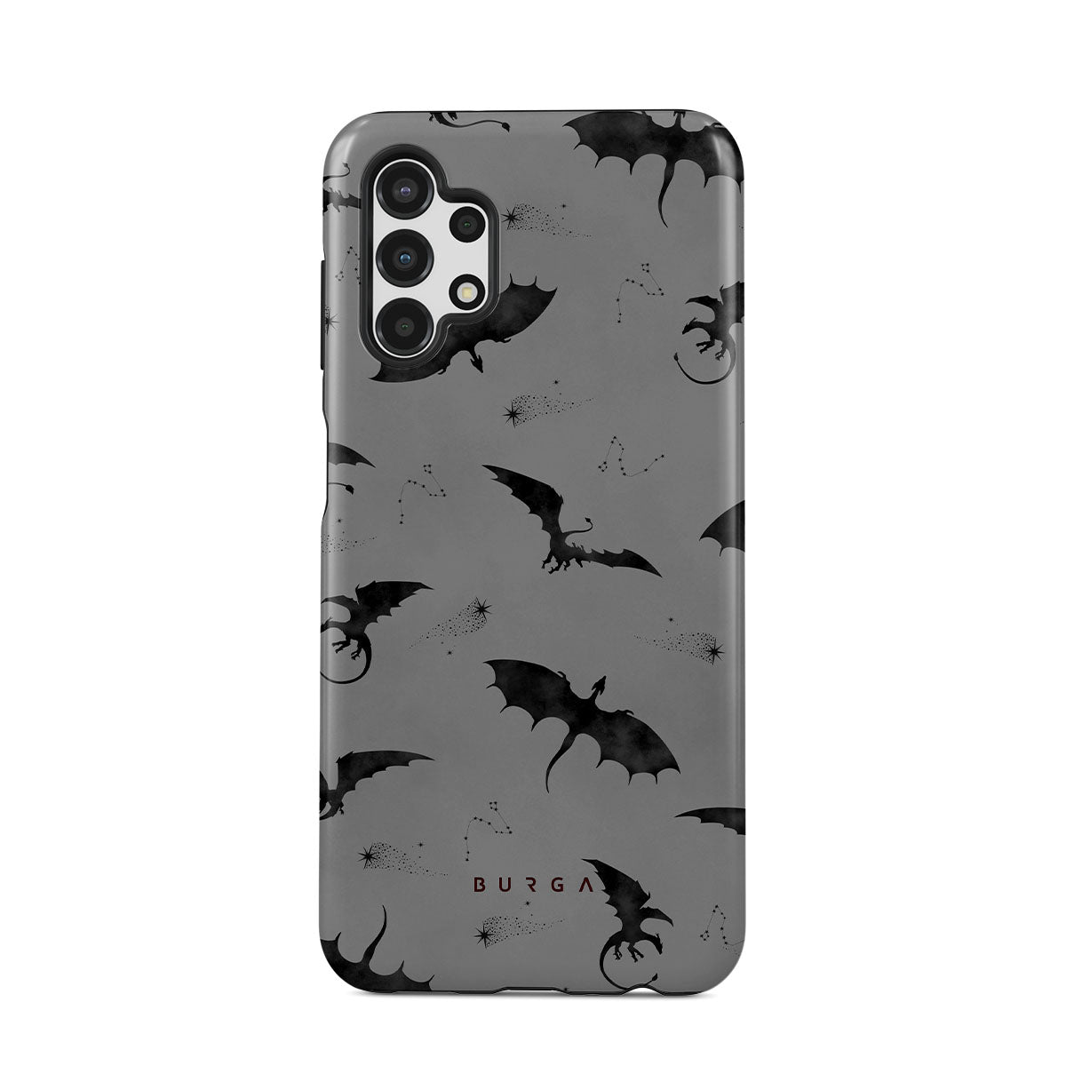 Under the dusk's veil, Draco takes flight, its bats whispering secrets to those who dare. Bold yet elusive, this Samsung Galaxy A13 4G phone case design invites you to embrace the unknown and let the wings of mystery guide your night—where will they take you?