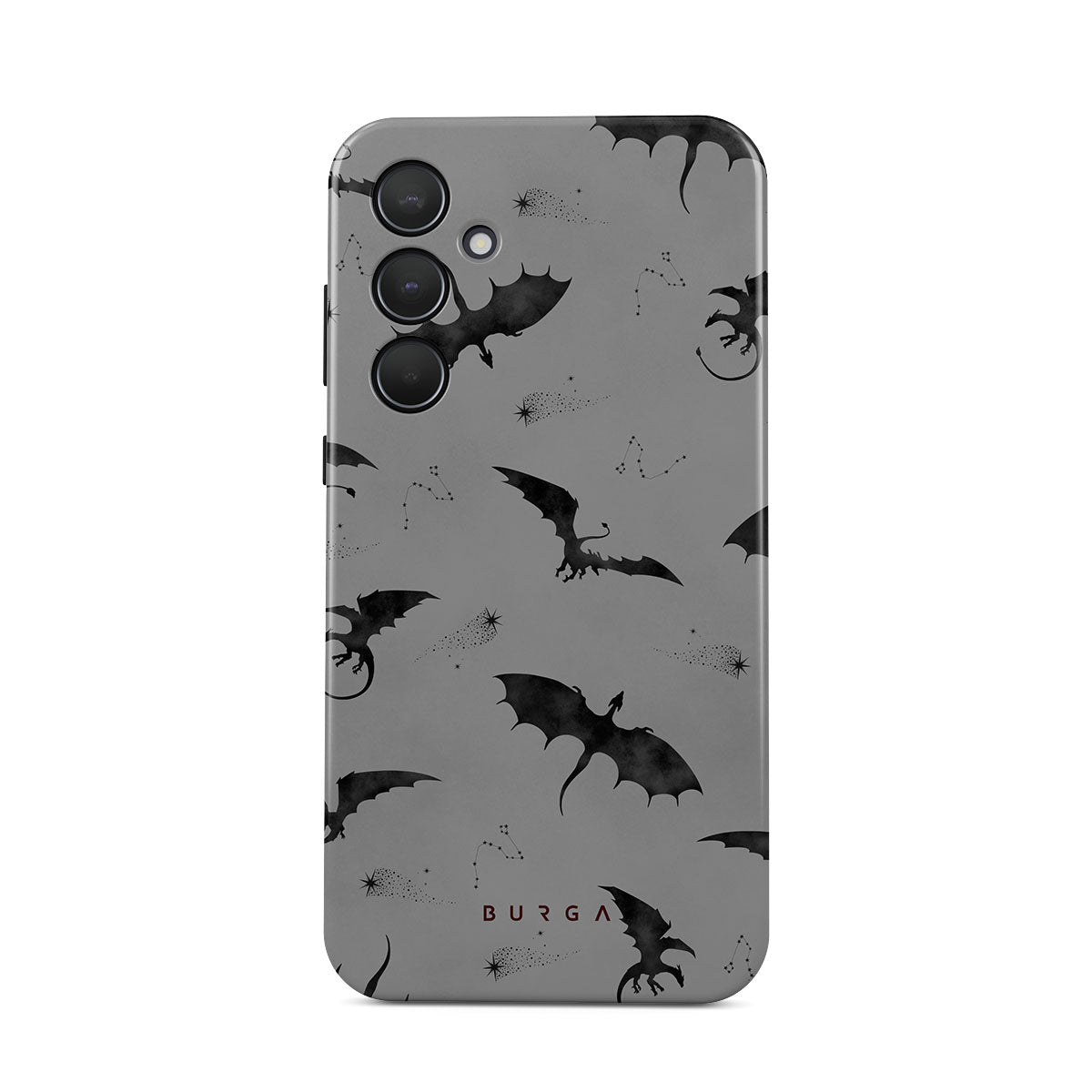 Under the dusk's veil, Draco takes flight, its bats whispering secrets to those who dare. Bold yet elusive, this Samsung Galaxy A35 phone case design invites you to embrace the unknown and let the wings of mystery guide your night—where will they take you?