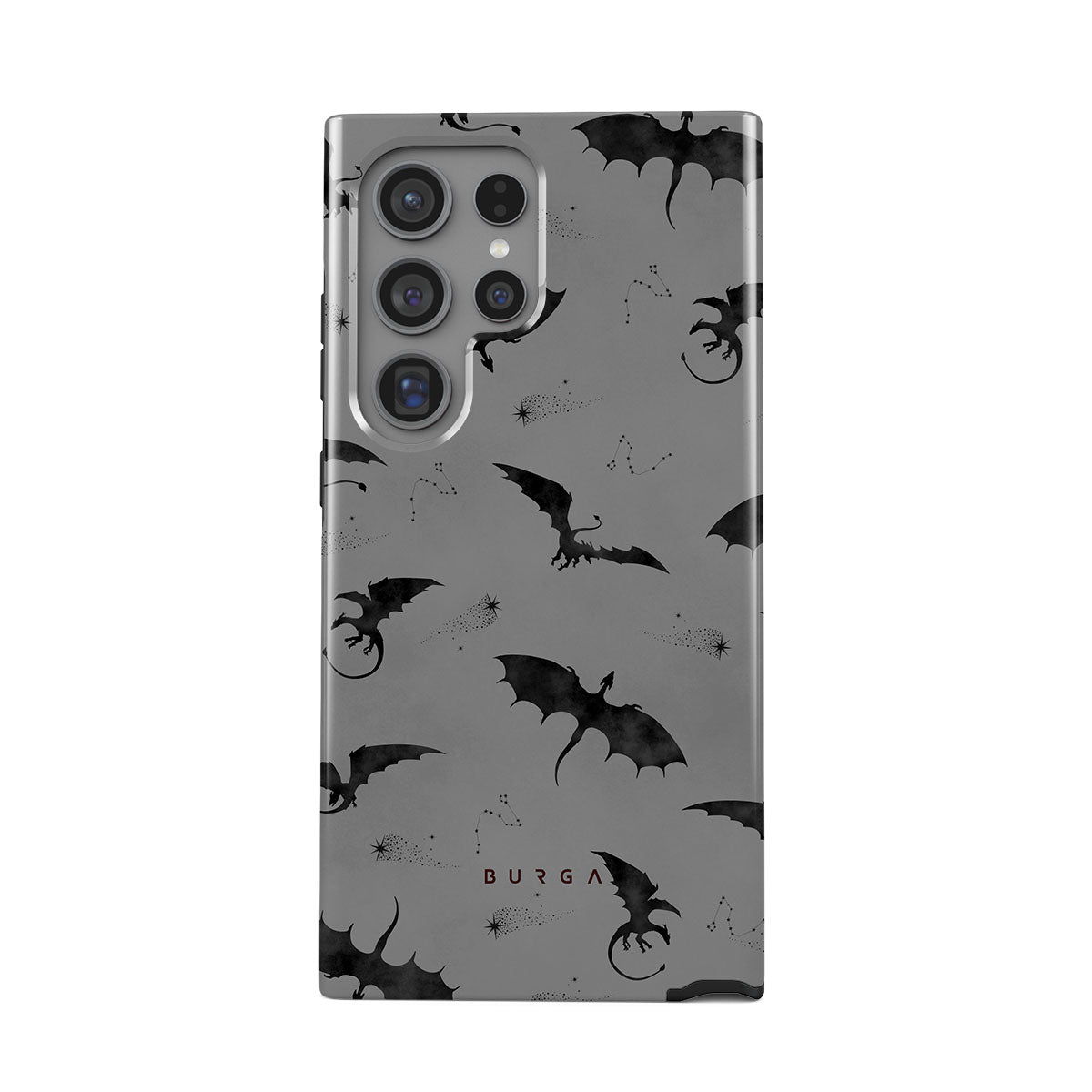 Under the dusk's veil, Draco takes flight, its bats whispering secrets to those who dare. Bold yet elusive, this Samsung Galaxy S24 Ultra phone case design invites you to embrace the unknown and let the wings of mystery guide your night—where will they take you?