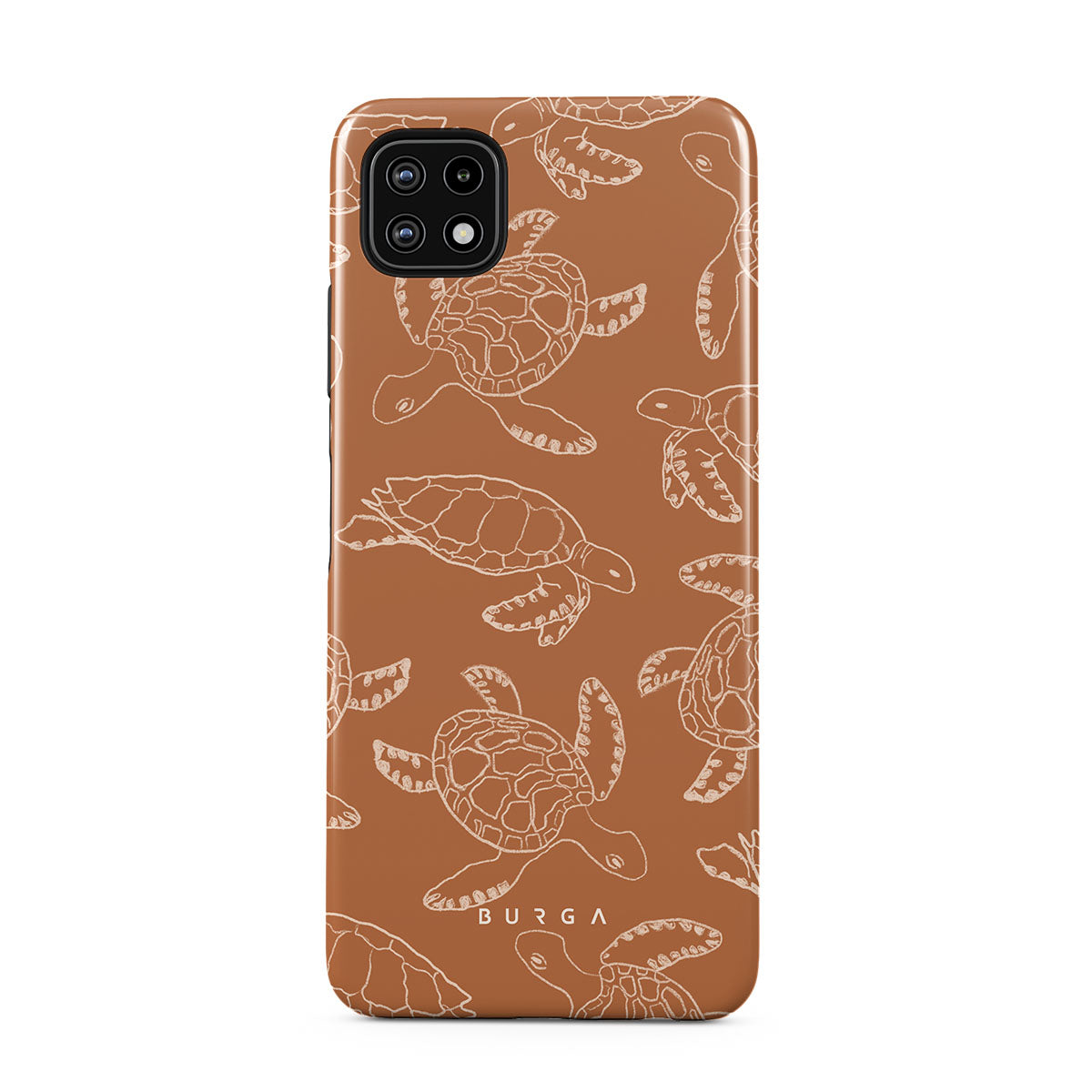 Step into a world of pure bliss and turtle magic with our Earth Shell design. The rich earth tones creating a calming ambiance blend beautifully with the playful turtles floating into adventure. Embark on a thrilling escapade to reconnect with nature with our Earth Shell Samsung Galaxy A22 5G case.
