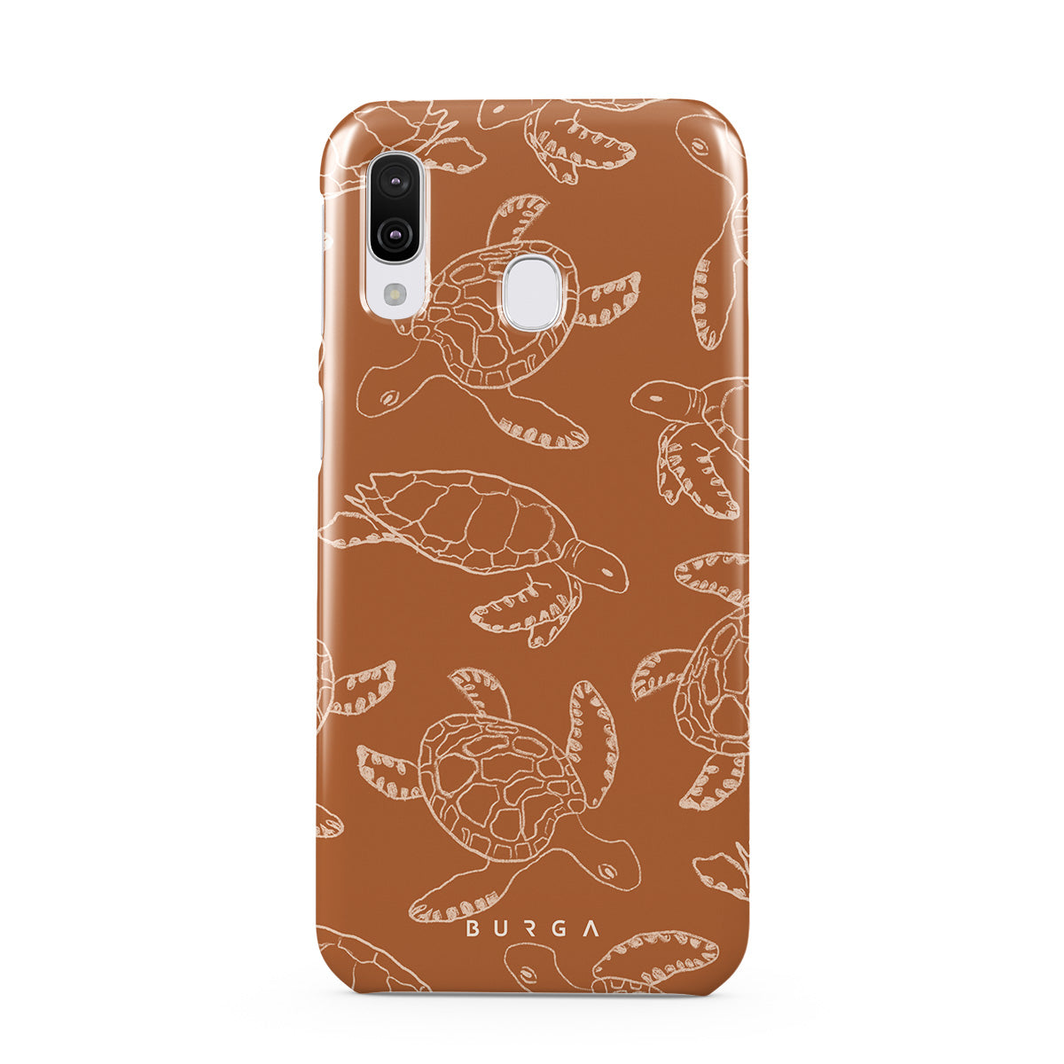 Step into a world of pure bliss and turtle magic with our Earth Shell design. The rich earth tones creating a calming ambiance blend beautifully with the playful turtles floating into adventure. Embark on a thrilling escapade to reconnect with nature with our Earth Shell Samsung Galaxy A40 case.