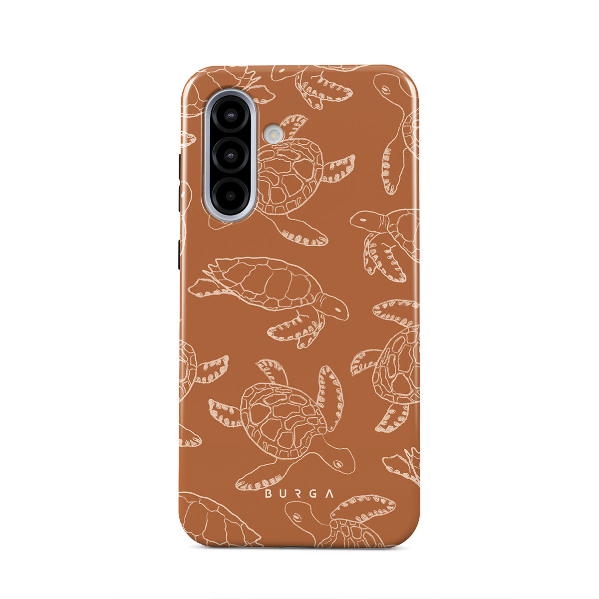 Step into a world of pure bliss and turtle magic with our Earth Shell design. The rich earth tones creating a calming ambiance blend beautifully with the playful turtles floating into adventure. Embark on a thrilling escapade to reconnect with nature with our Earth Shell Samsung Galaxy A56 5G case.