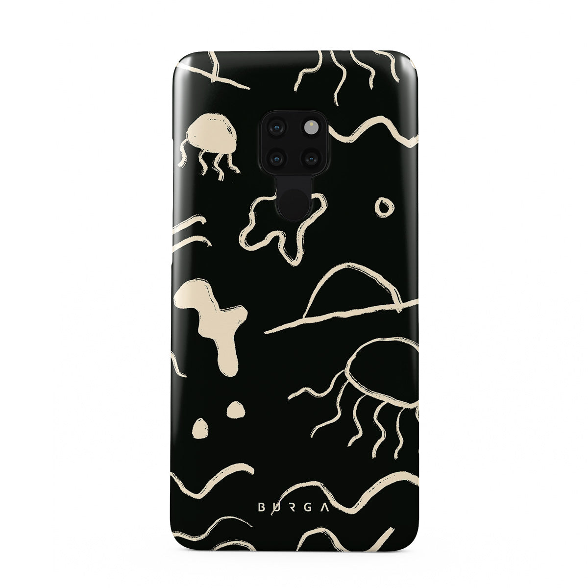 Our Eclipse Huawei Mate 20 design reflects the enigmatic beauty of the ocean during a solar eclipse. The dark hues and bright accents represent how the light dances on the water, while the waves and jellyfish capture the serene yet dynamic nature of the ocean.