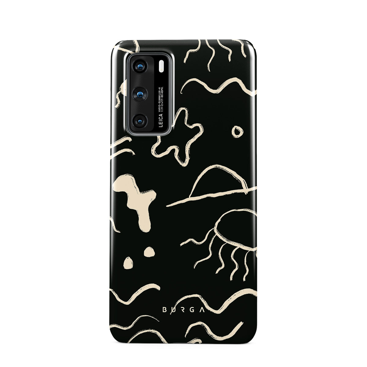 Our Eclipse Huawei P40 design reflects the enigmatic beauty of the ocean during a solar eclipse. The dark hues and bright accents represent how the light dances on the water, while the waves and jellyfish capture the serene yet dynamic nature of the ocean.