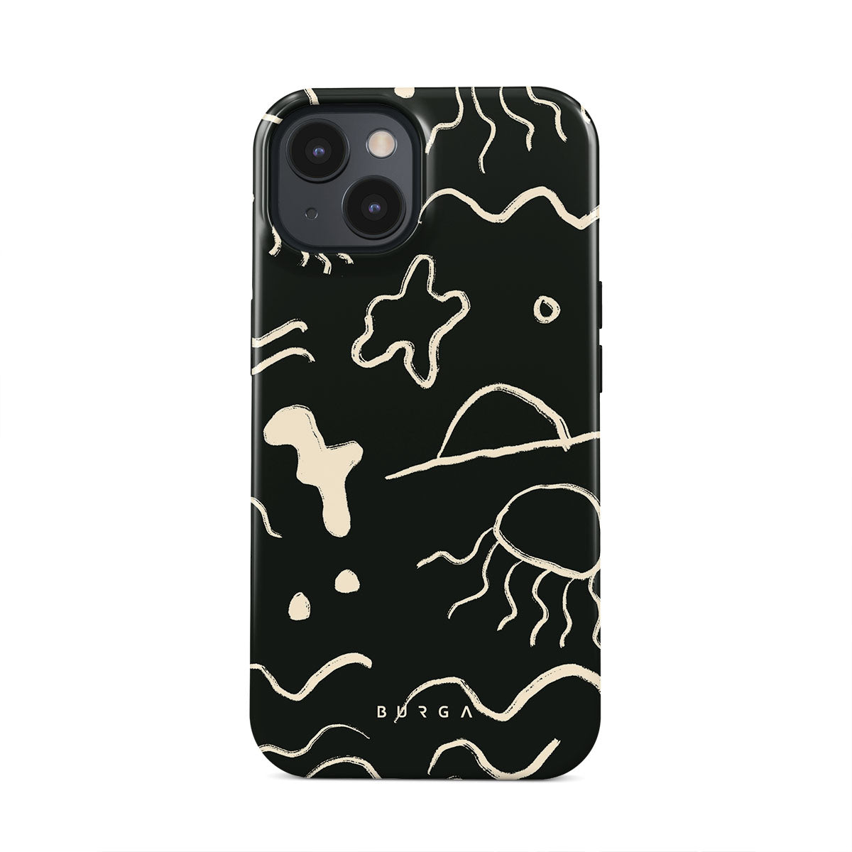 Our Eclipse iPhone 15 design reflects the enigmatic beauty of the ocean during a solar eclipse. The dark hues and bright accents represent how the light dances on the water, while the waves and jellyfish capture the serene yet dynamic nature of the ocean.