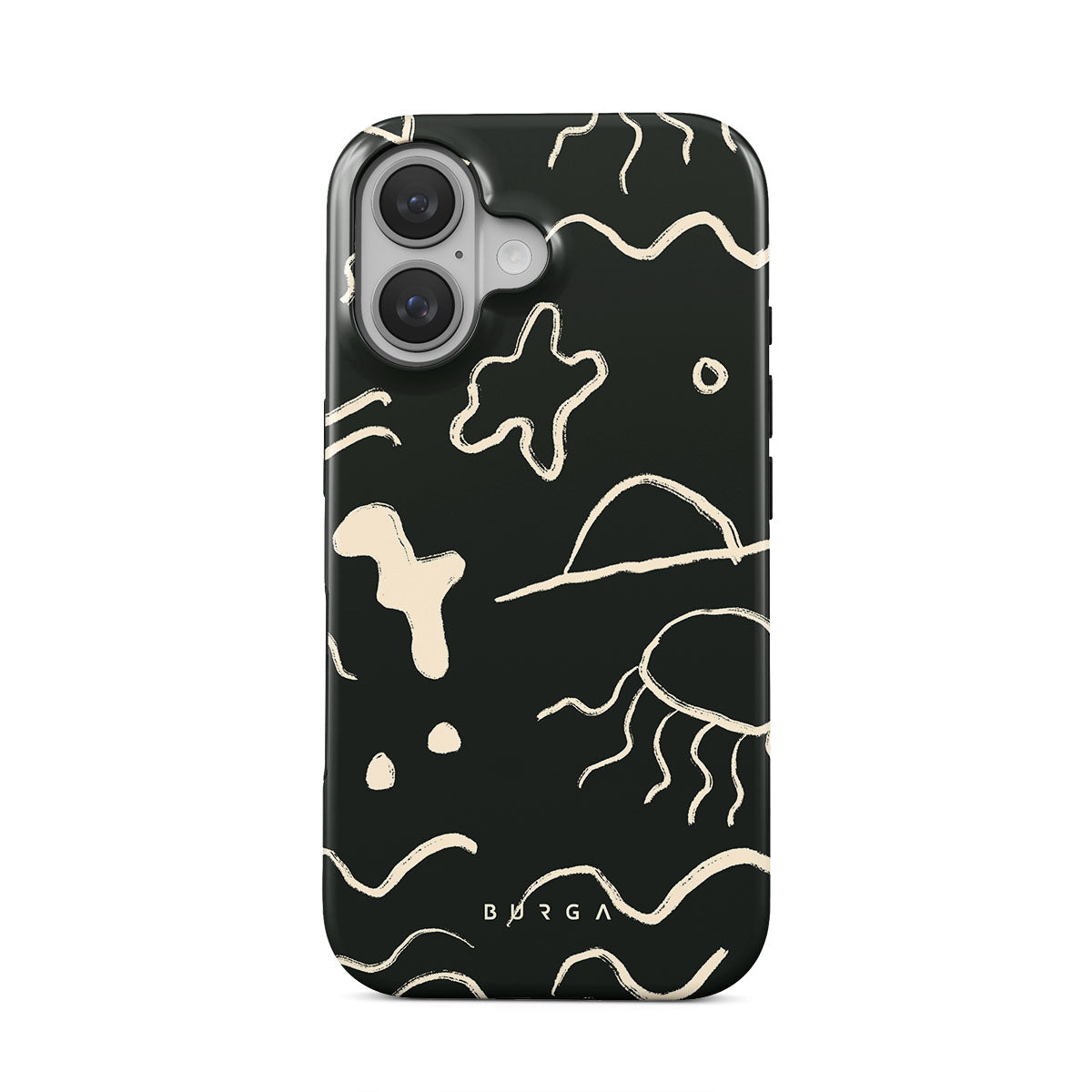 Our Eclipse iPhone 16 Plus design reflects the enigmatic beauty of the ocean during a solar eclipse. The dark hues and bright accents represent how the light dances on the water, while the waves and jellyfish capture the serene yet dynamic nature of the ocean.