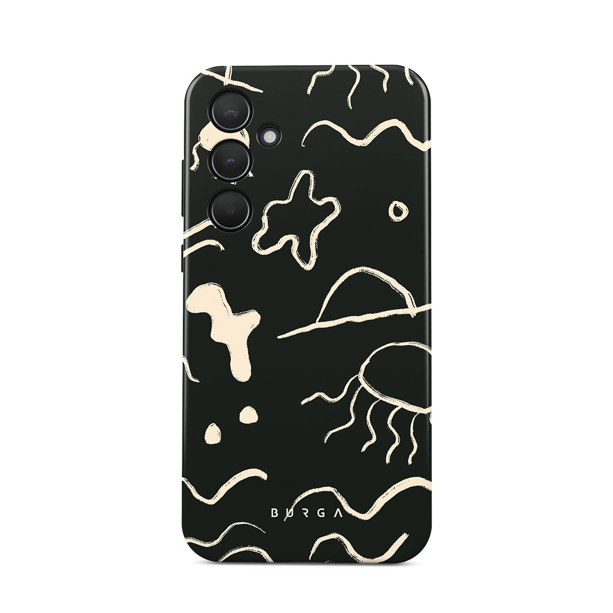 Our Eclipse Samsung Galaxy A35 design reflects the enigmatic beauty of the ocean during a solar eclipse. The dark hues and bright accents represent how the light dances on the water, while the waves and jellyfish capture the serene yet dynamic nature of the ocean.