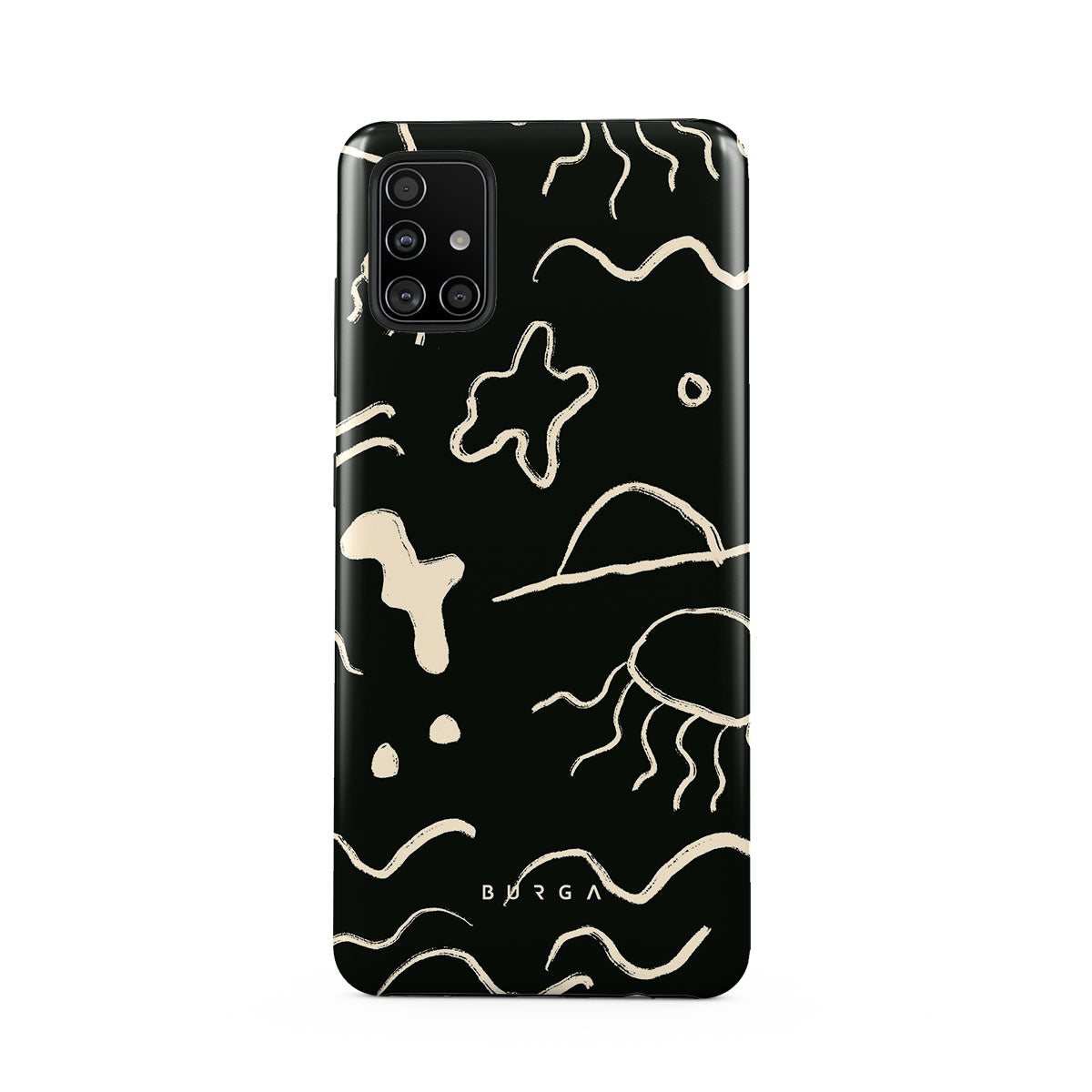 Our Eclipse Samsung Galaxy A51 4G design reflects the enigmatic beauty of the ocean during a solar eclipse. The dark hues and bright accents represent how the light dances on the water, while the waves and jellyfish capture the serene yet dynamic nature of the ocean.