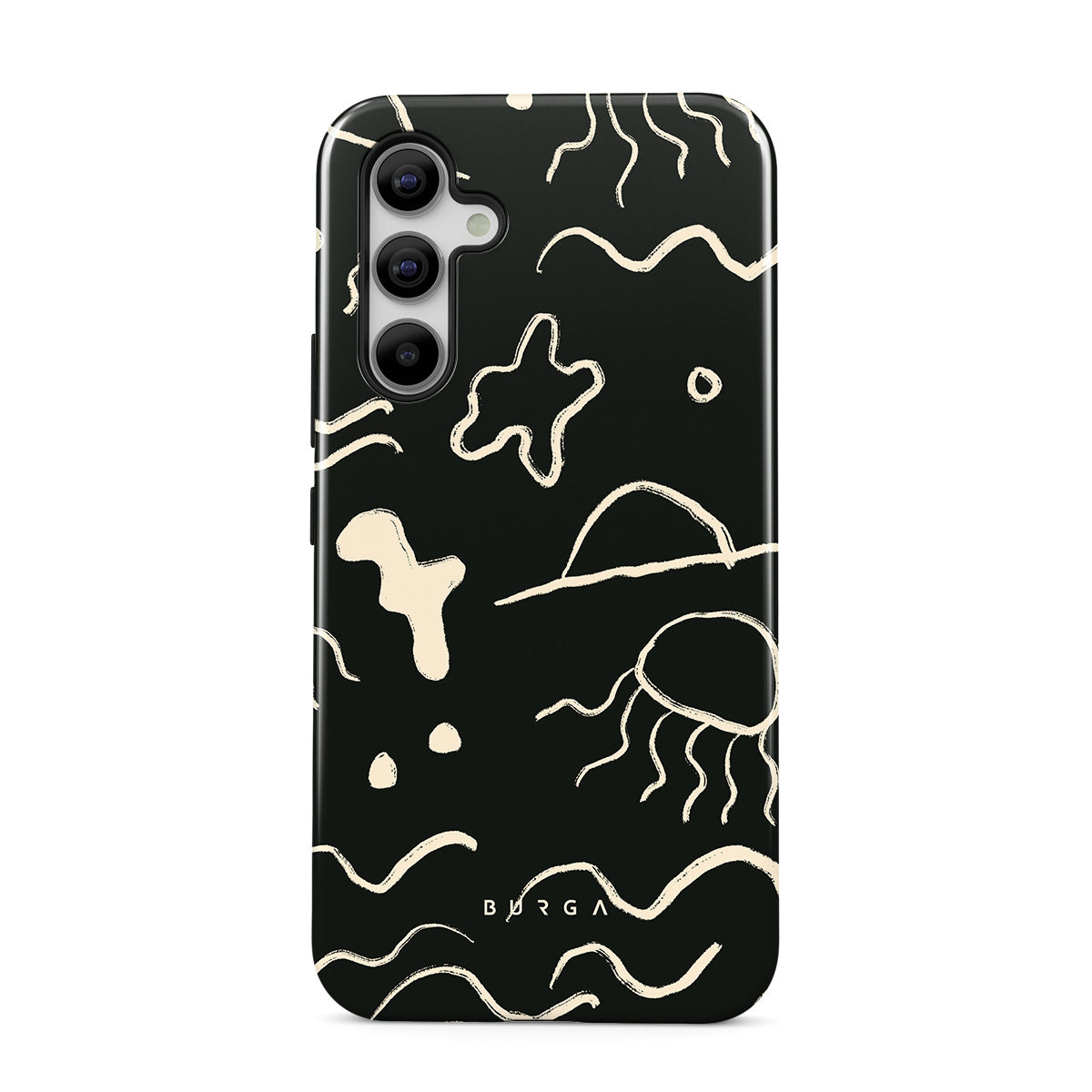 Our Eclipse Samsung Galaxy A54 design reflects the enigmatic beauty of the ocean during a solar eclipse. The dark hues and bright accents represent how the light dances on the water, while the waves and jellyfish capture the serene yet dynamic nature of the ocean.